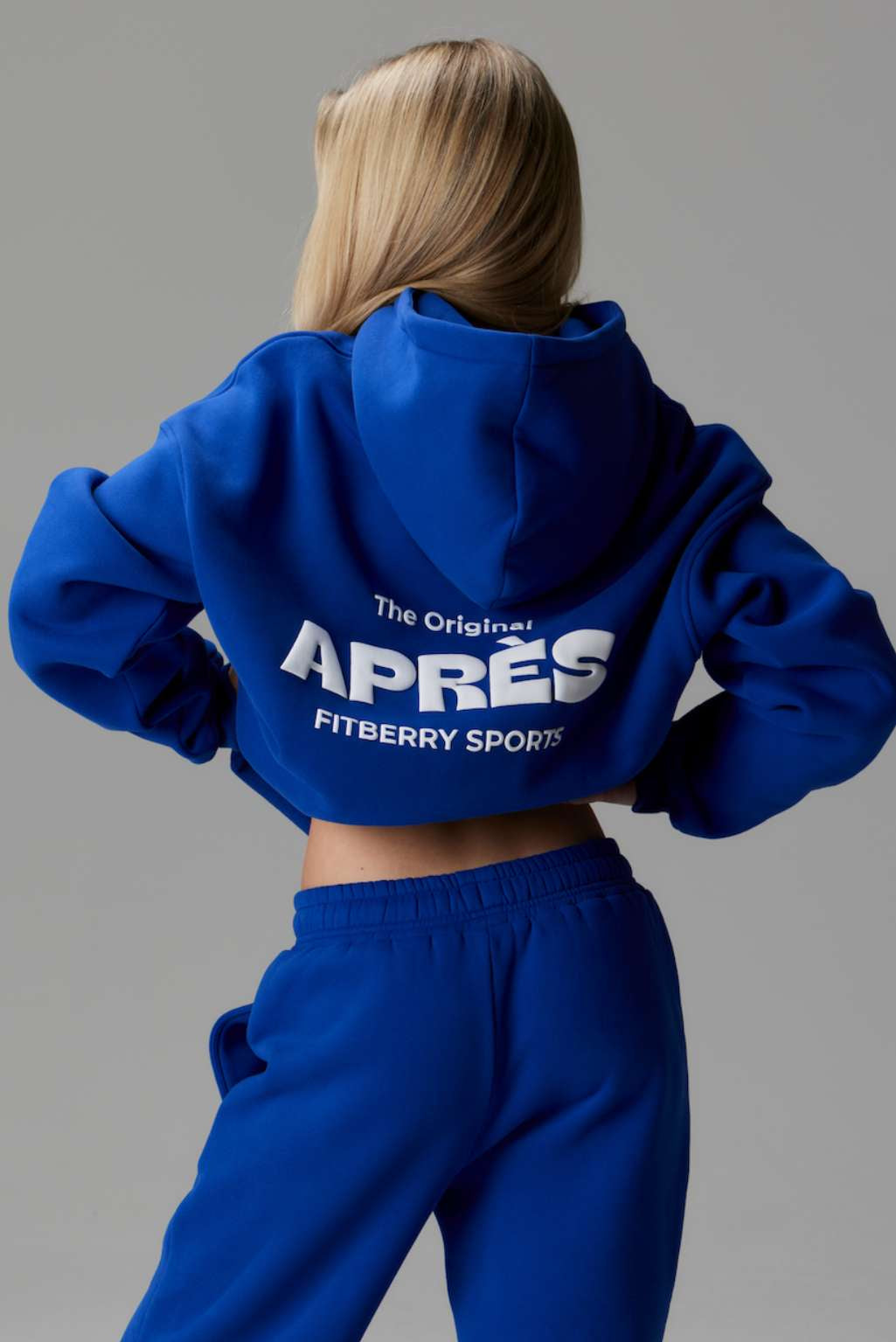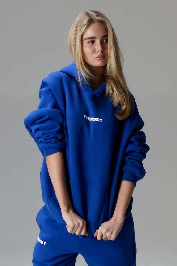 FITBERRY® APRÈS OVERSIZED HOODIE. An oversized hoodie crafted from premium high-quality cotton fabric. The hoodie has a soft fleece interior, dropped shoulders, a cozy hood, front pocket and ribbed details on the sleeves and waist. Featuring our signature Fitberry Après print to front and back.