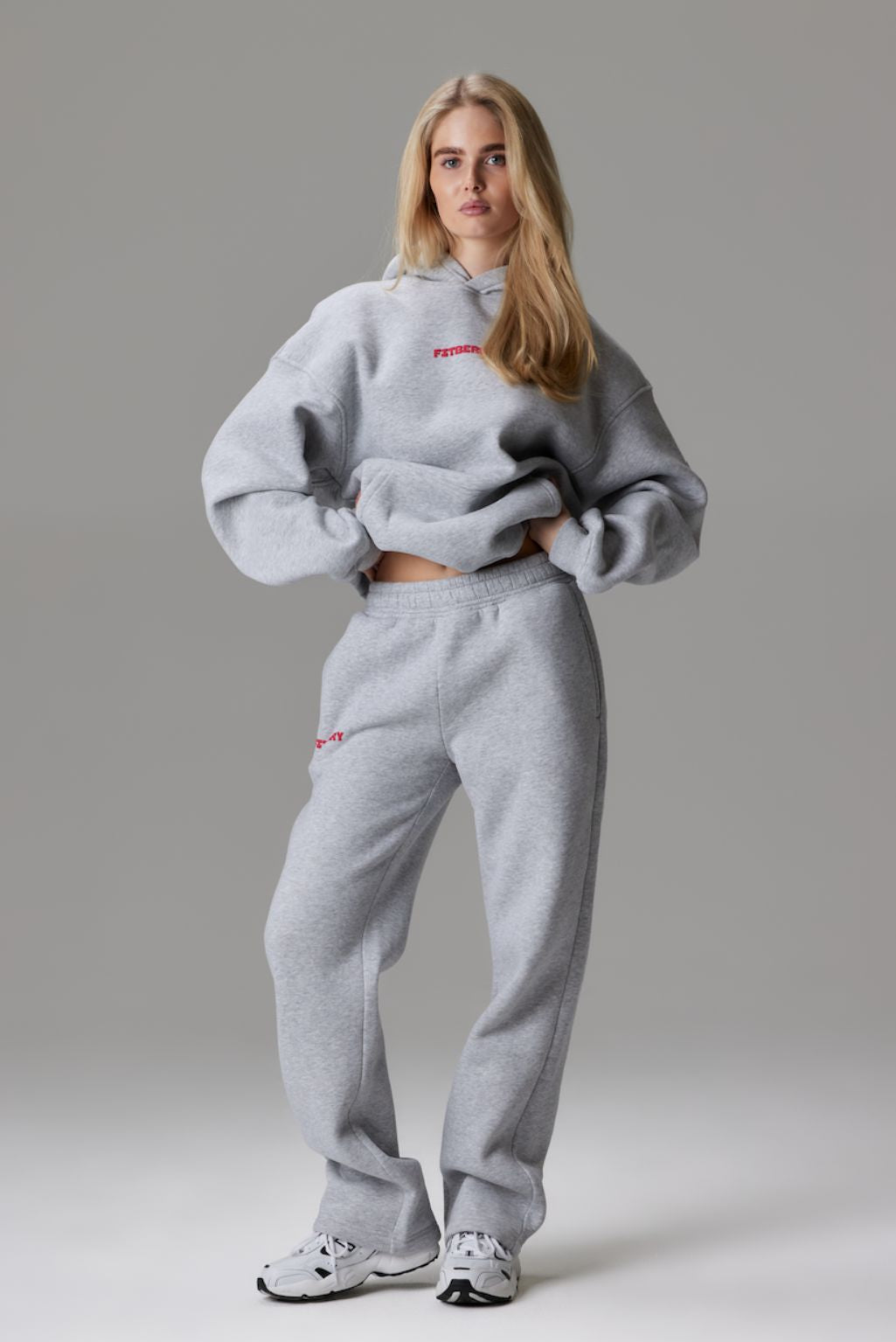 Model 2: Emma is 173cm and wears a size S in both hoodie and joggers.