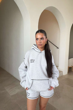 FITBERRY® CONTOUR OVERSIZED HOODIE. An oversized hoodie crafted from premium high-quality cotton fabric. Designed with a tonal seam detailing that adds structure and contrast to the silhouette. The hoodie has a soft fleece interior, dropped shoulders, a cozy hood, front pocket and ribbed details on the sleeves and waist. Finished with an embroidered Fitberry contour logo to front.