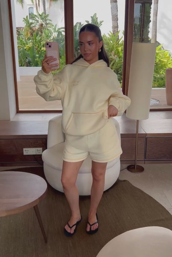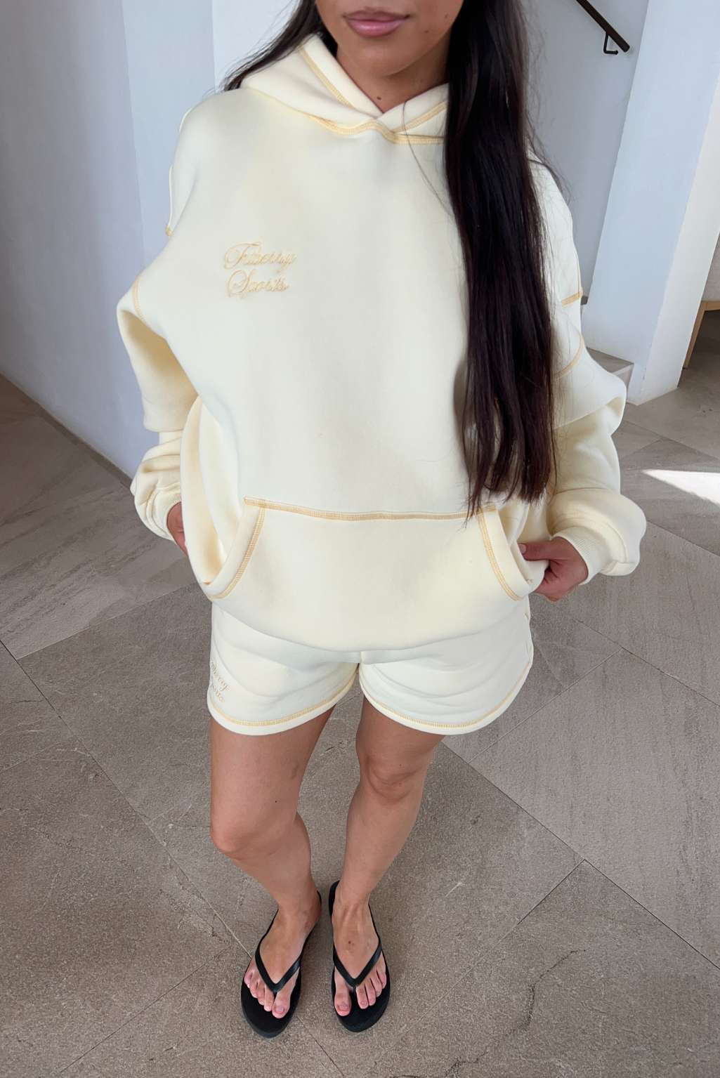 FITBERRY® CONTOUR SHORTS. Shorts with a relaxed and slightly oversized fit crafted from a premium high-quality cotton fabric. Designed with a tonal seam detailing that adds structure and contrast to the silhouette. The shorts feature a soft fleece interior, deep side pockets and a hidden adjustable drawstring. Finished with an embroidered Fitberry contour logo to front.