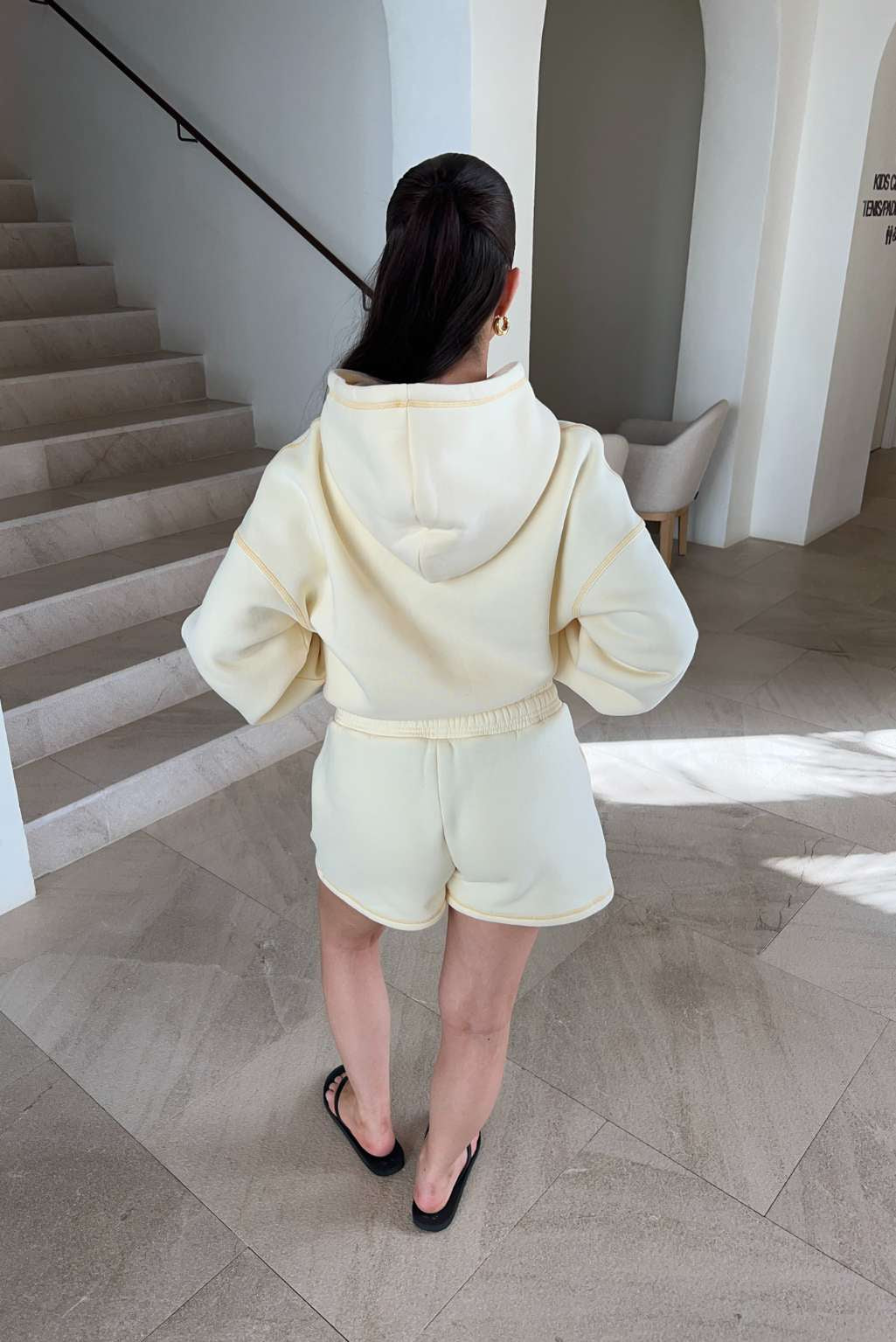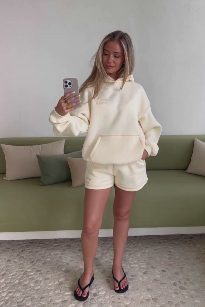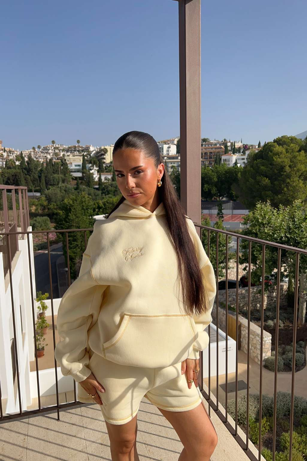 Model 1: Hanna is 160cm and wears a size S in hoodie and size XS in joggers / shorts.