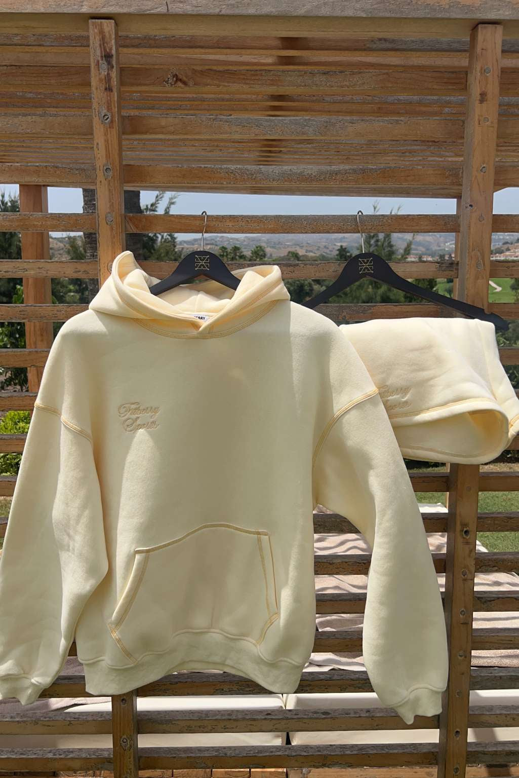 Model 2: Anne is 160cm and wears a size S in hoodie and size M in joggers / shorts.