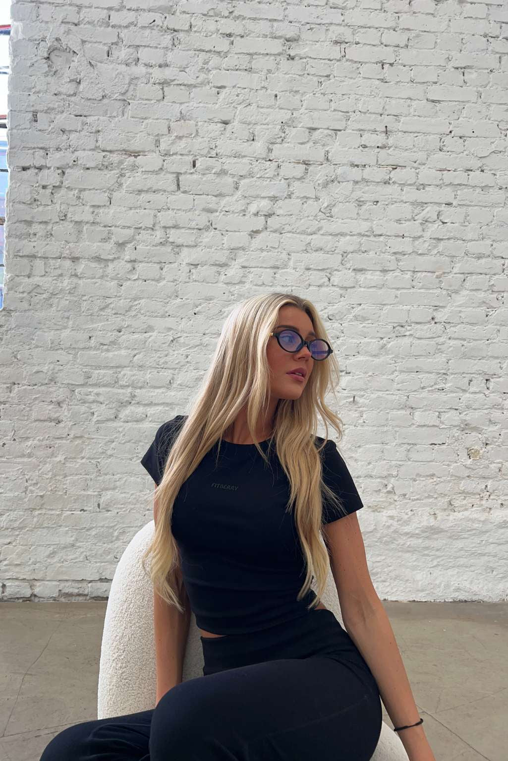 FITBERRY® EVERYDAY TEE. Soft and sculpting everyday tee. Crafted from a breathable high-quality cotton fabric with added stretch. Designed for a flattering snug fit. The tee features short sleeves, a round neckline and a slightly cropped cut. Featuring a minimalist tonal FITBERRY® logo detail to front.