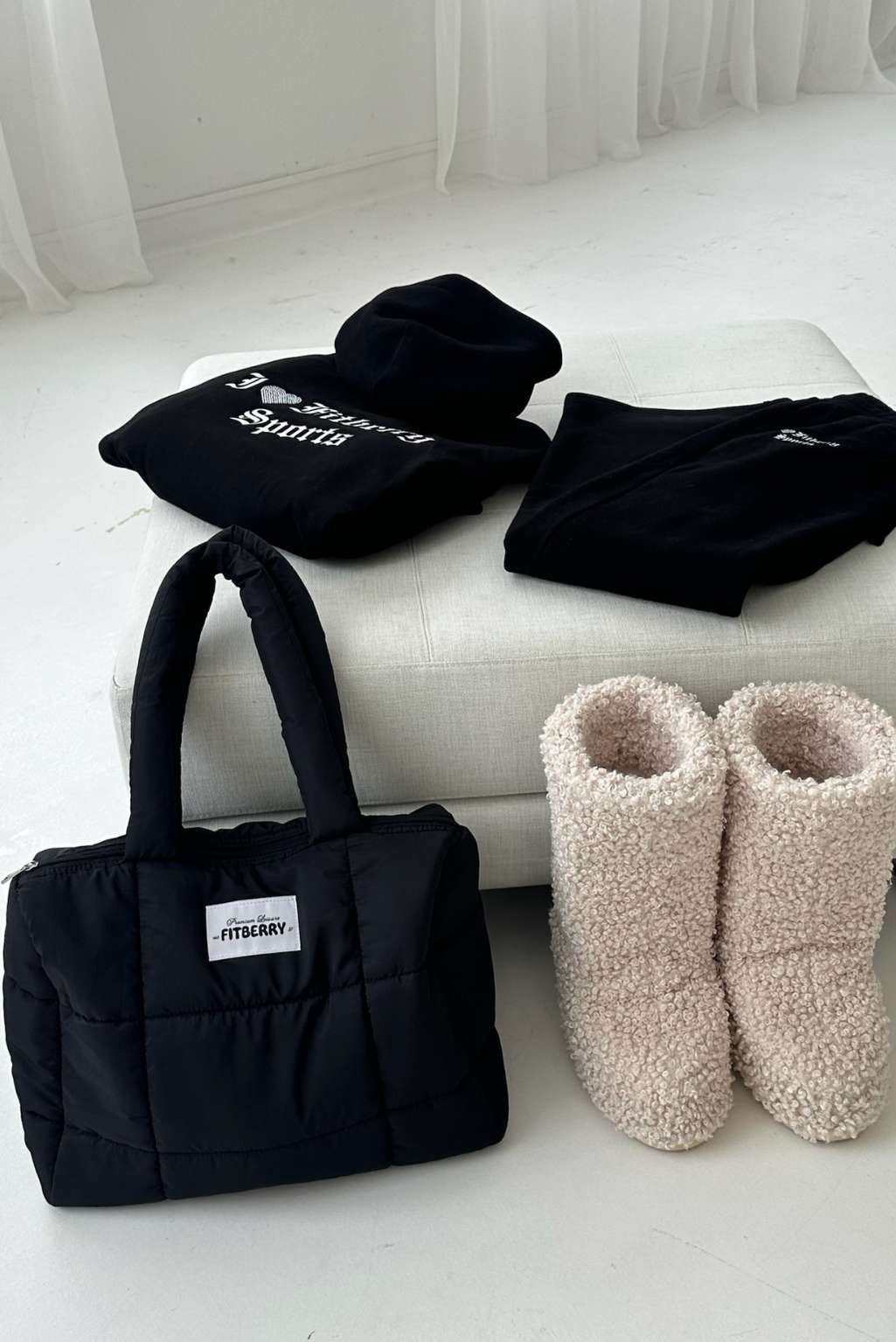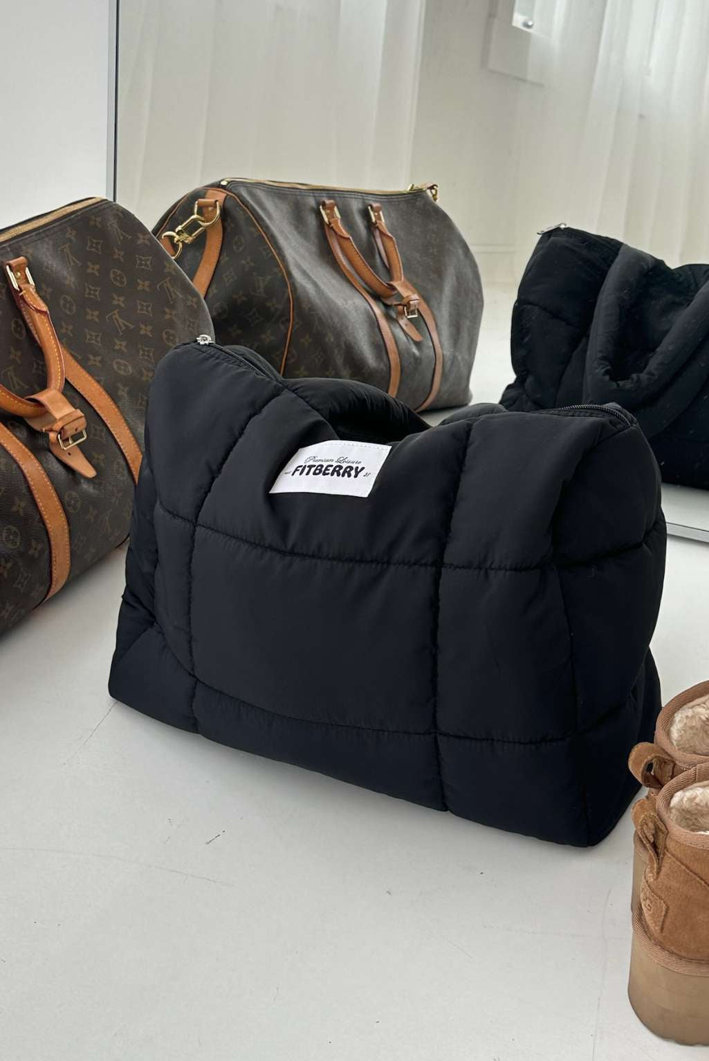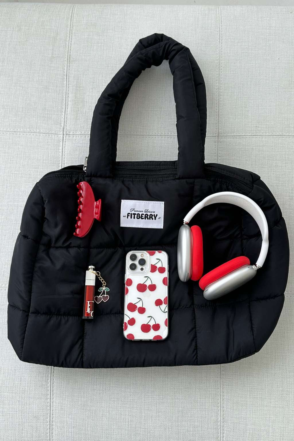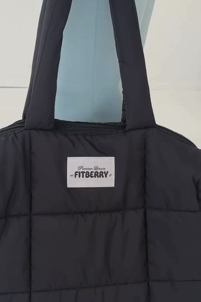 FITBERRY® PUFFER WEEKEND BAG. The perfect weekend bag. Featuring Fitberry woven logo, shoulder straps, tonal stitching, zipper closure and a small inner pocket to fit your keys, phone and other accessories.