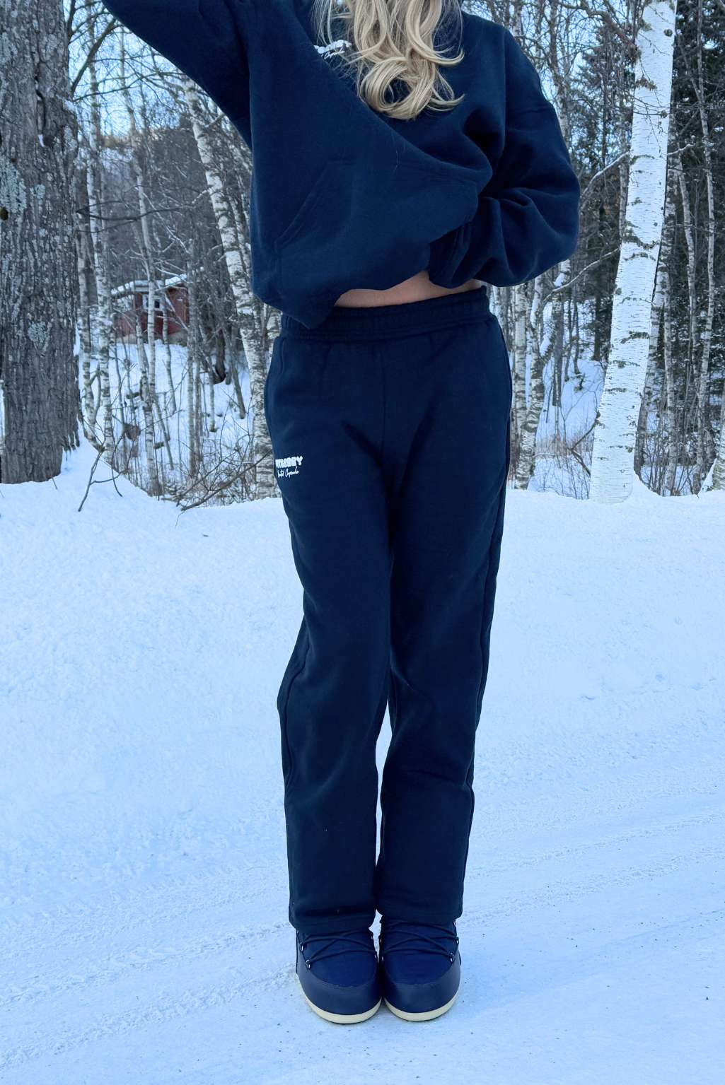 Frida Seemann is 180m and wears a size M in both hoodie and joggers.
