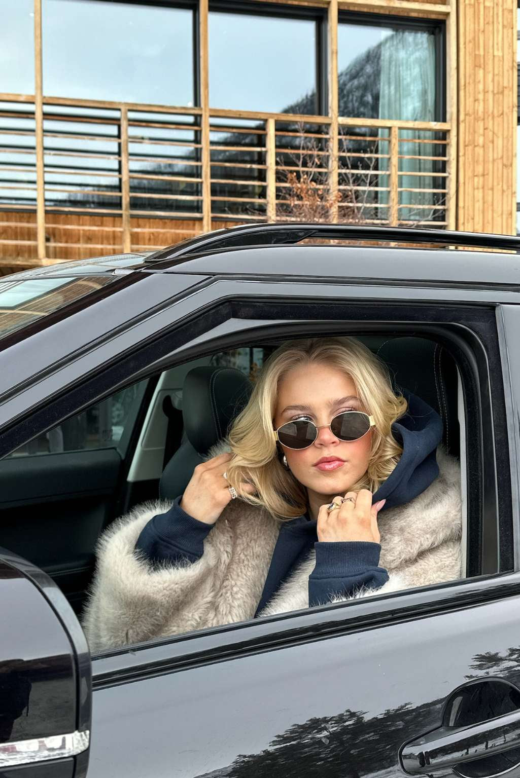 Julie Fiala is 185cm and wears a size L in both hoodie and joggers.