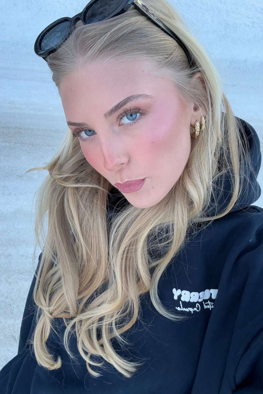Frida Seemann is 180m and wears a size M in both hoodie and joggers.