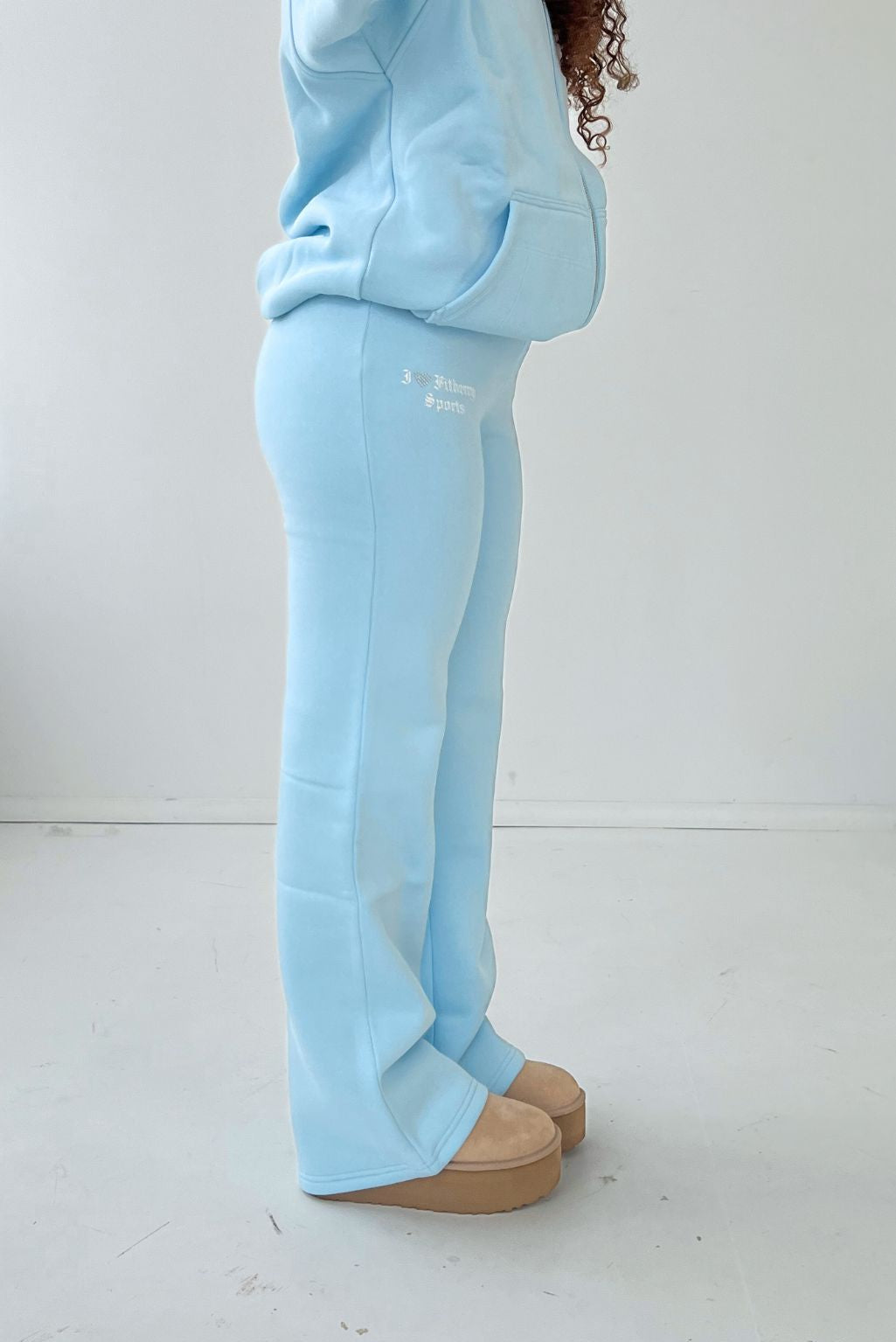 I ♥ FITBERRY® LOW WAIST FLARED JOGGERS. Joggers with a wide flared leg and a low waist cut. Crafted from a premium high-quality cotton fabric. The joggers have soft fleece interior, adjustable drawstring at waist and I ♥ FITBERRY print with handmade rhinestone heart.