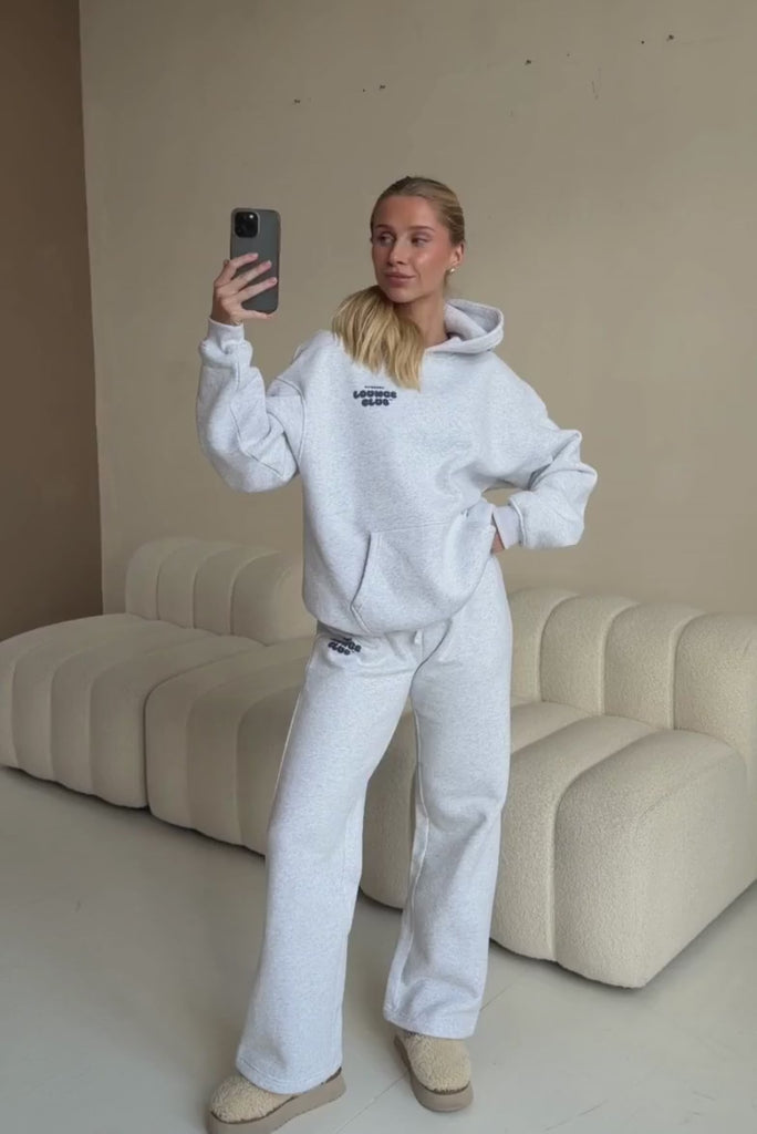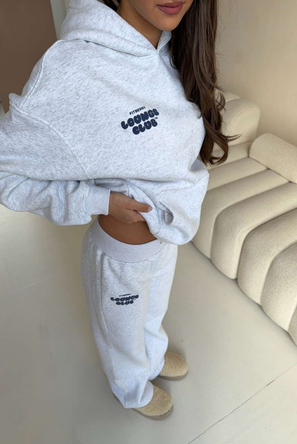 FITBERRY® LOUNGE CLUB FLARED LEG JOGGERS. Mid-waist joggers with a wide flared leg and the perfect fit. Crafted from a premium high-quality cotton fabric. The flared joggers have soft fleece interior, adjustable drawstring waist and our signature Fitberry Lounge Club print to front.