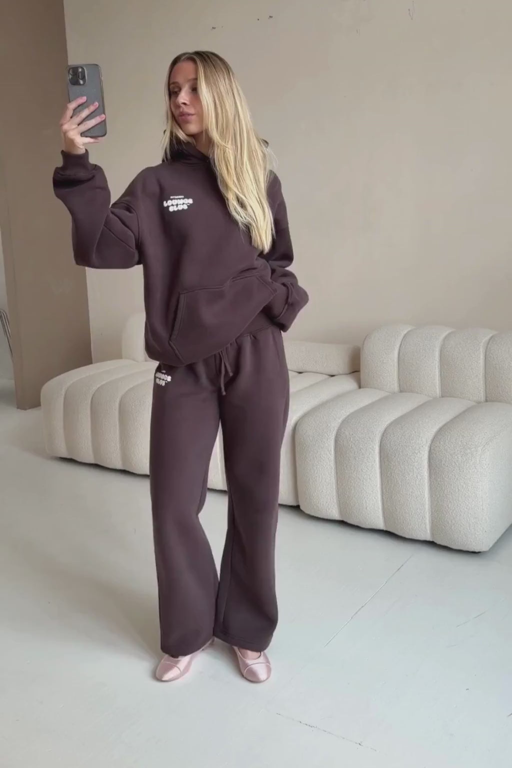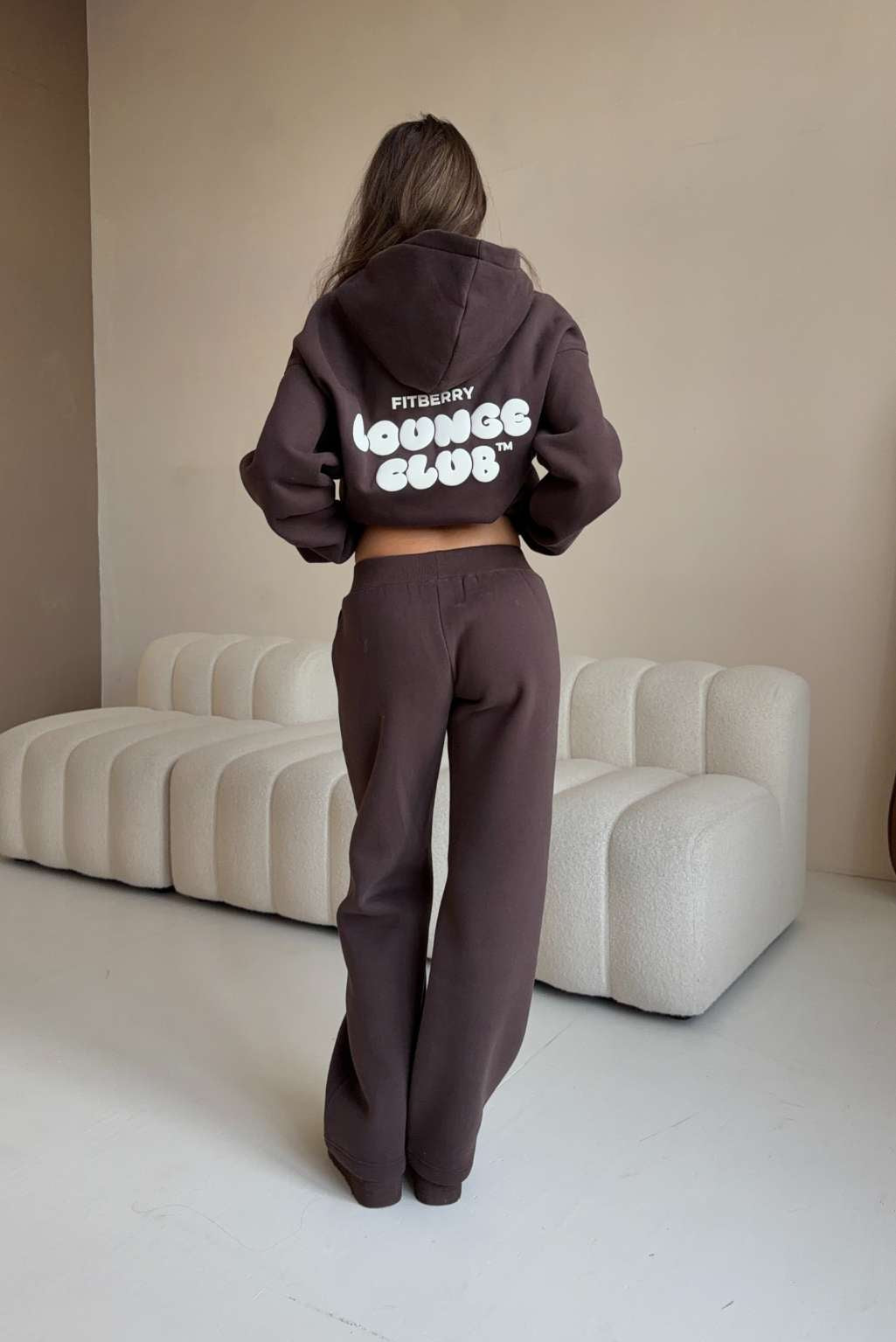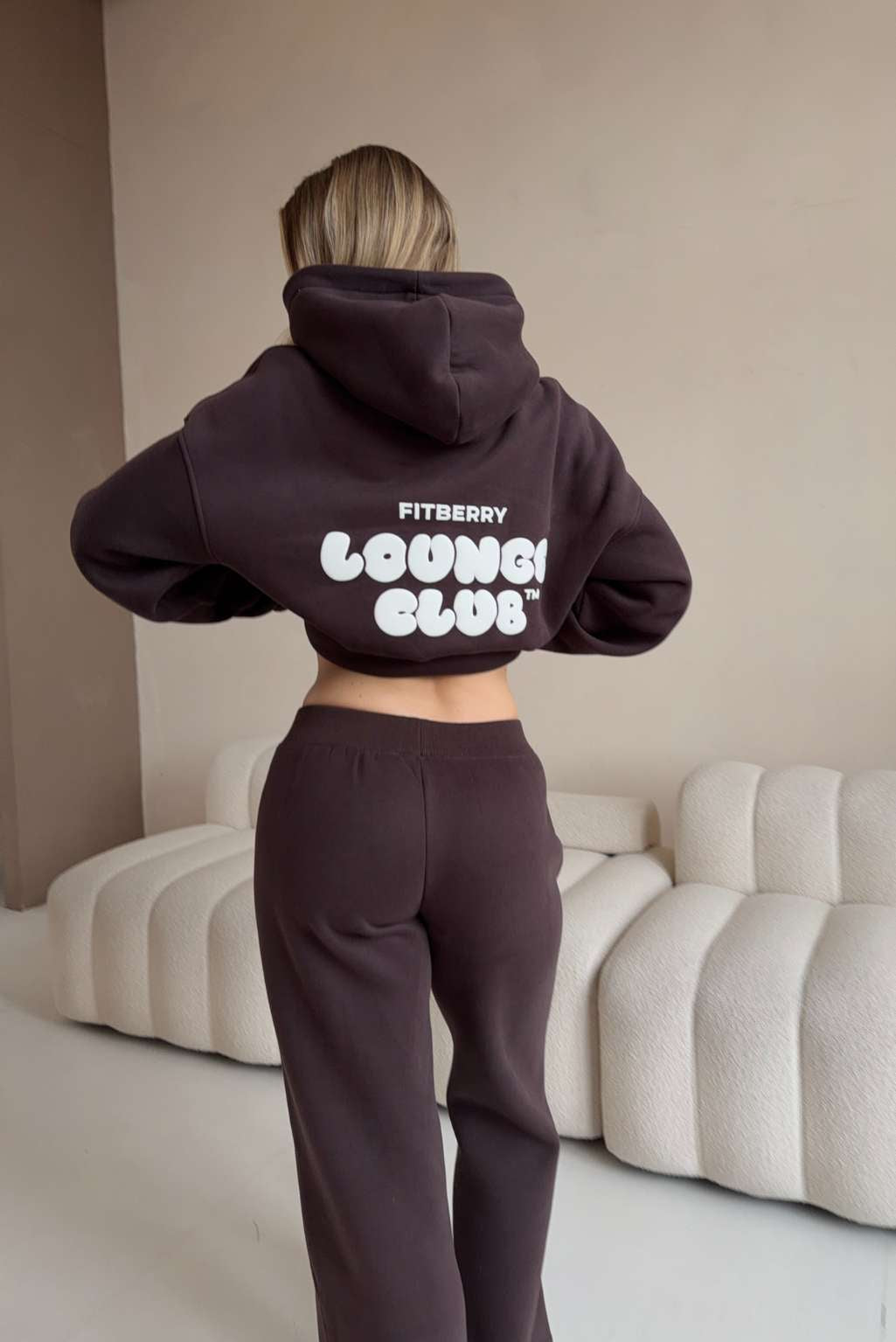 FITBERRY® LOUNGE CLUB OVERSIZED HOODIE. An oversized hoodie crafted from premium high-quality cotton fabric. The hoodie has a soft fleece interior, dropped shoulders, a cozy hood, front pocket and ribbed details on the sleeves and waist. Featuring our signature Fitberry Lounge Club print to front and back.
