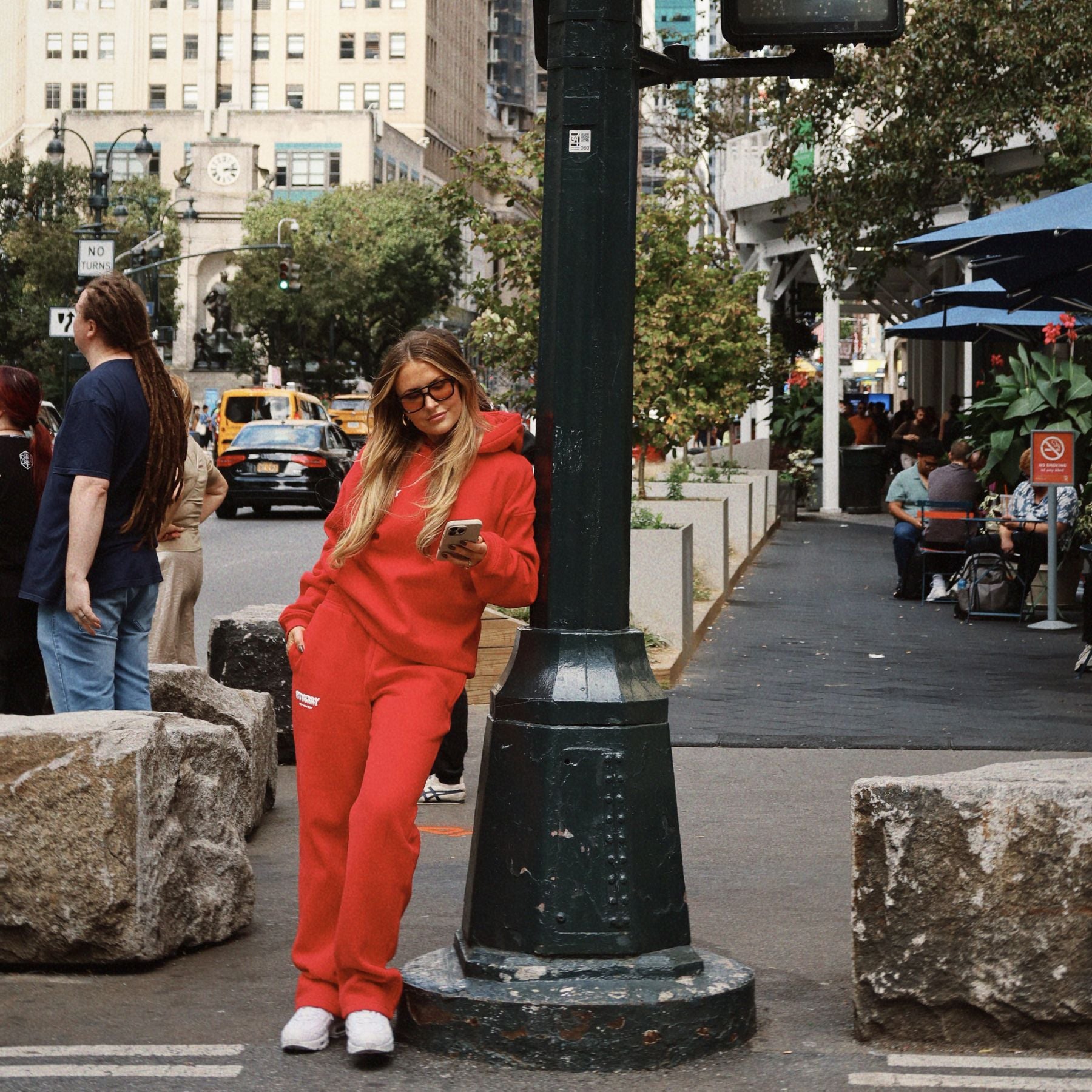 Model 2: Moa Mattsson is 170cm and wears a size S in both hoodie and joggers.