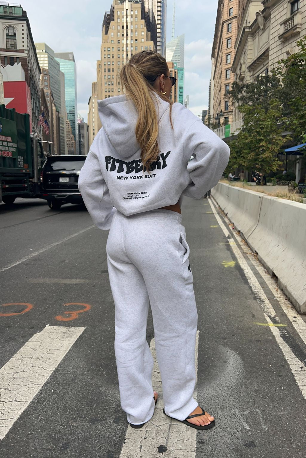 FITBERRY® NEW YORK EDIT STRAIGHT LEG JOGGERS. Mid-waist joggers with straight leg and the perfect fit. Crafted from a premium high-quality cotton fabric. The straight joggers have soft fleece interior, deep pockets and a hidden adjustable drawstring waist. Featuring our Fitberry New York edit print to front.