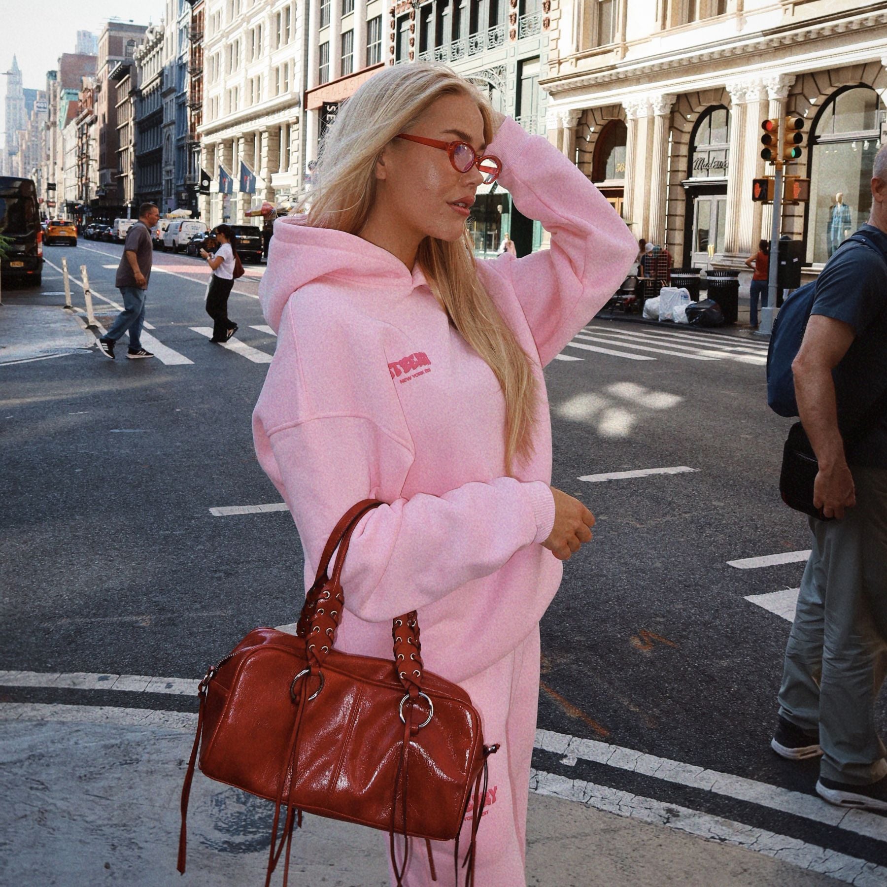 Model 1: Moa Mattsson is 170cm and wears a size S in both hoodie and joggers.