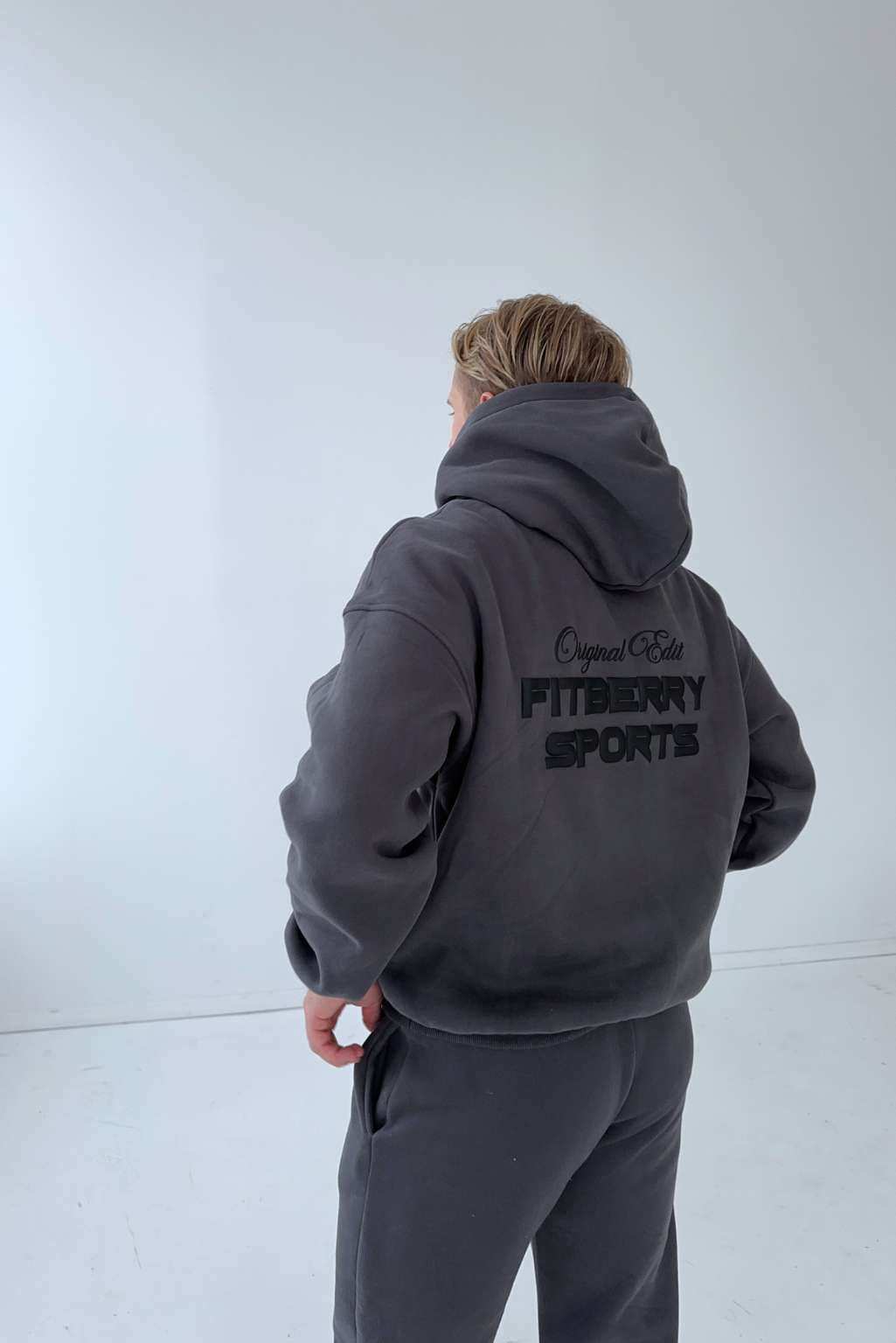 FITBERRY® ORIGINAL EDIT OVERSIZED HOODIE. An oversized hoodie crafted from premium high-quality cotton fabric. The hoodie has a soft fleece interior, dropped shoulders, a cozy hood and ribbed details on the sleeves and waist. Featuring Fitberry Original Edit print to front and back.