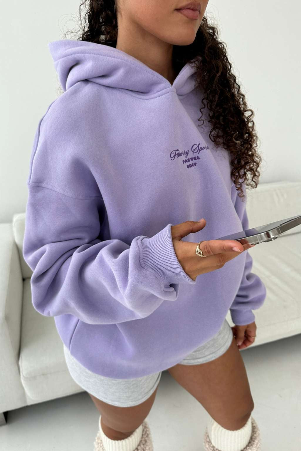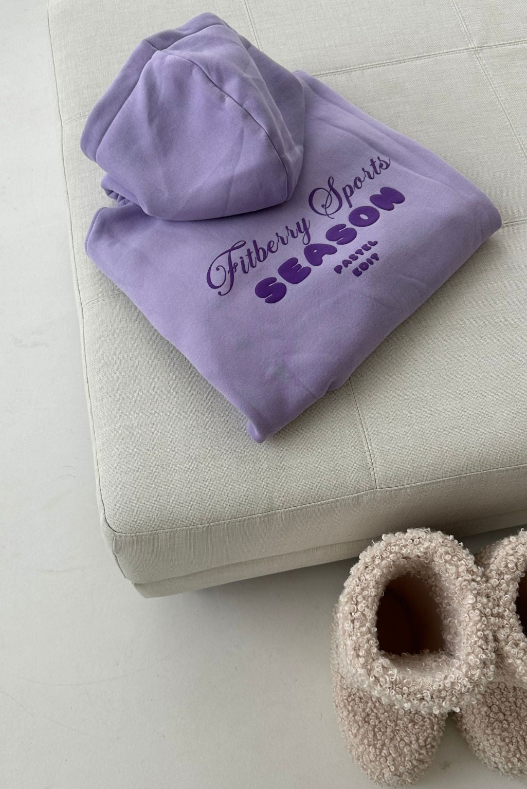 FITBERRY® PASTEL EDIT OVERSIZED HOODIE. An oversized hoodie crafted from premium high-quality cotton fabric. The hoodie has a soft fleece interior, dropped shoulders, a cozy hood and ribbed details on the sleeves and waist. Featuring Fitberry Pastel Edit print to front and back.