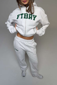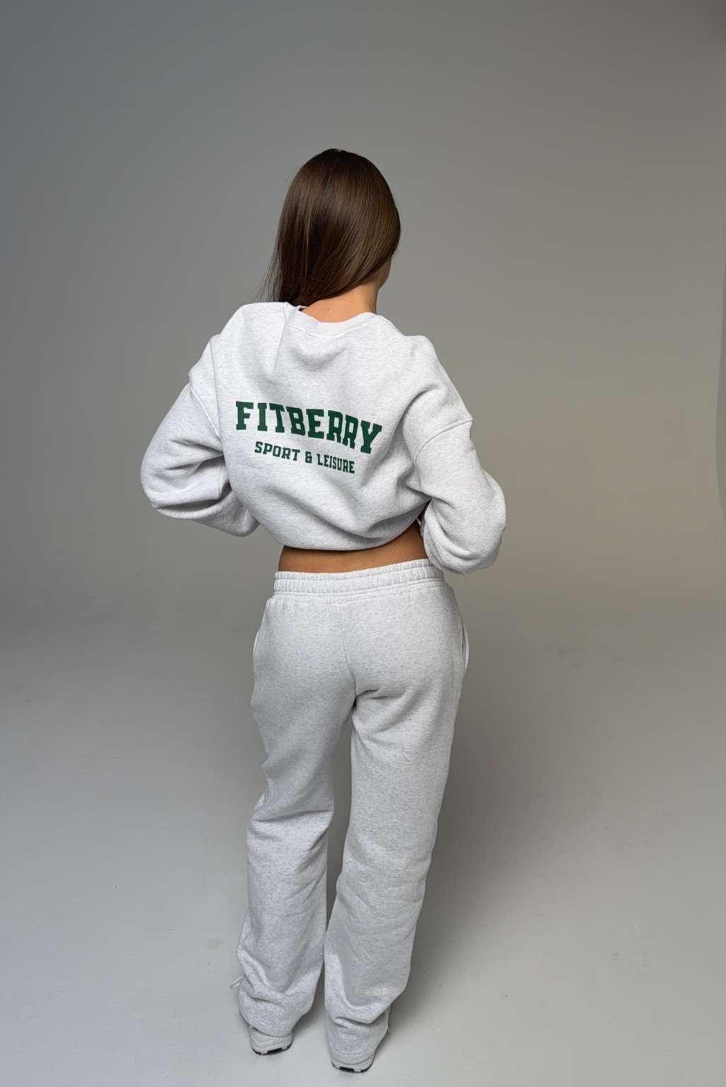 FITBERRY® SPORT & LEISURE OVERSIZED CREWNECK. An oversized crewneck crafted from premium high-quality cotton fabric. The crewneck has a soft fleece interior, round neck, dropped shoulders and ribbed details at the neck, cuffs and waist. Featuring FITBERRY® Sport & Leisure print to front.