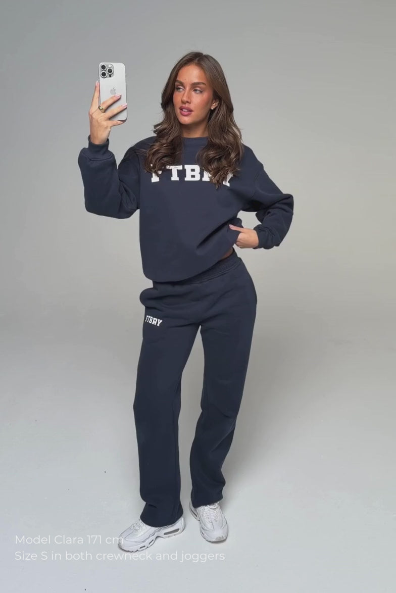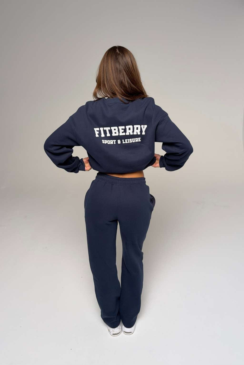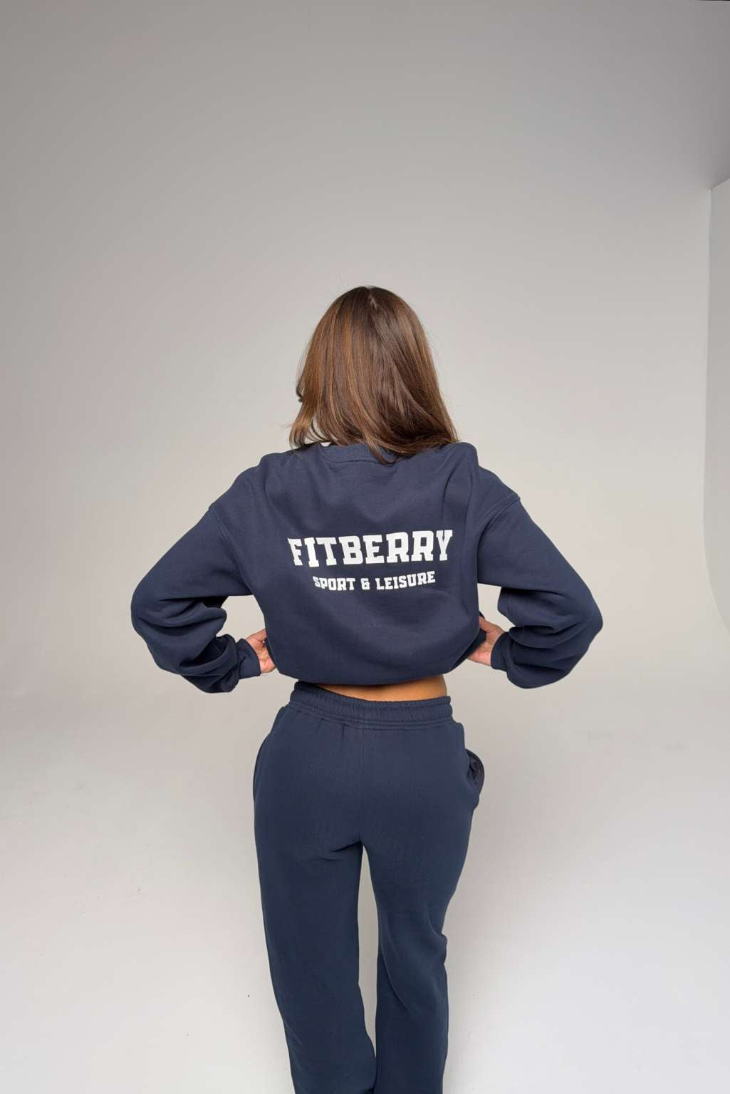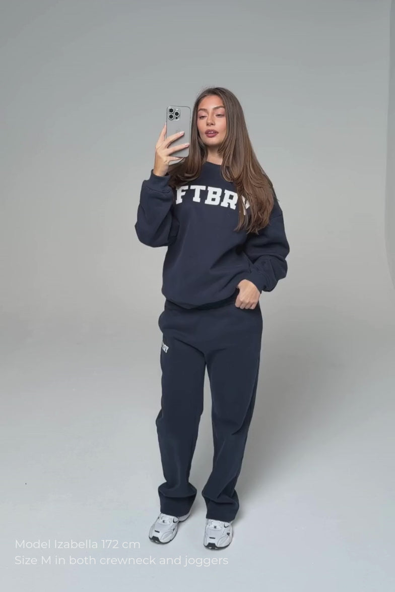 FITBERRY® SPORT & LEISURE OVERSIZED CREWNECK. An oversized crewneck crafted from premium high-quality cotton fabric. The crewneck has a soft fleece interior, round neck, dropped shoulders and ribbed details at the neck, cuffs and waist. Featuring FITBERRY® Sport & Leisure print to front.