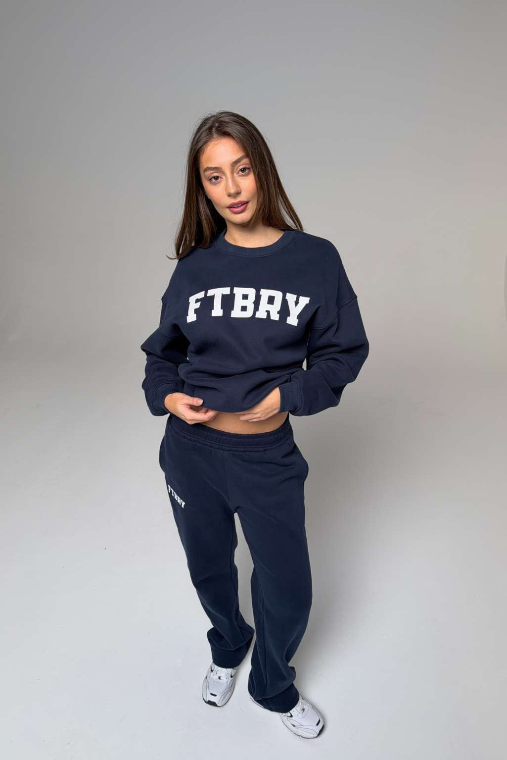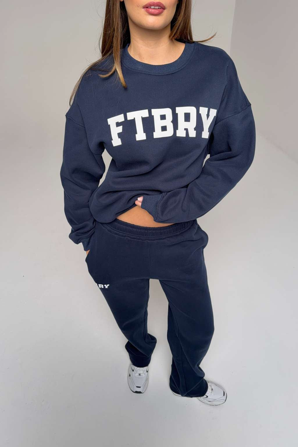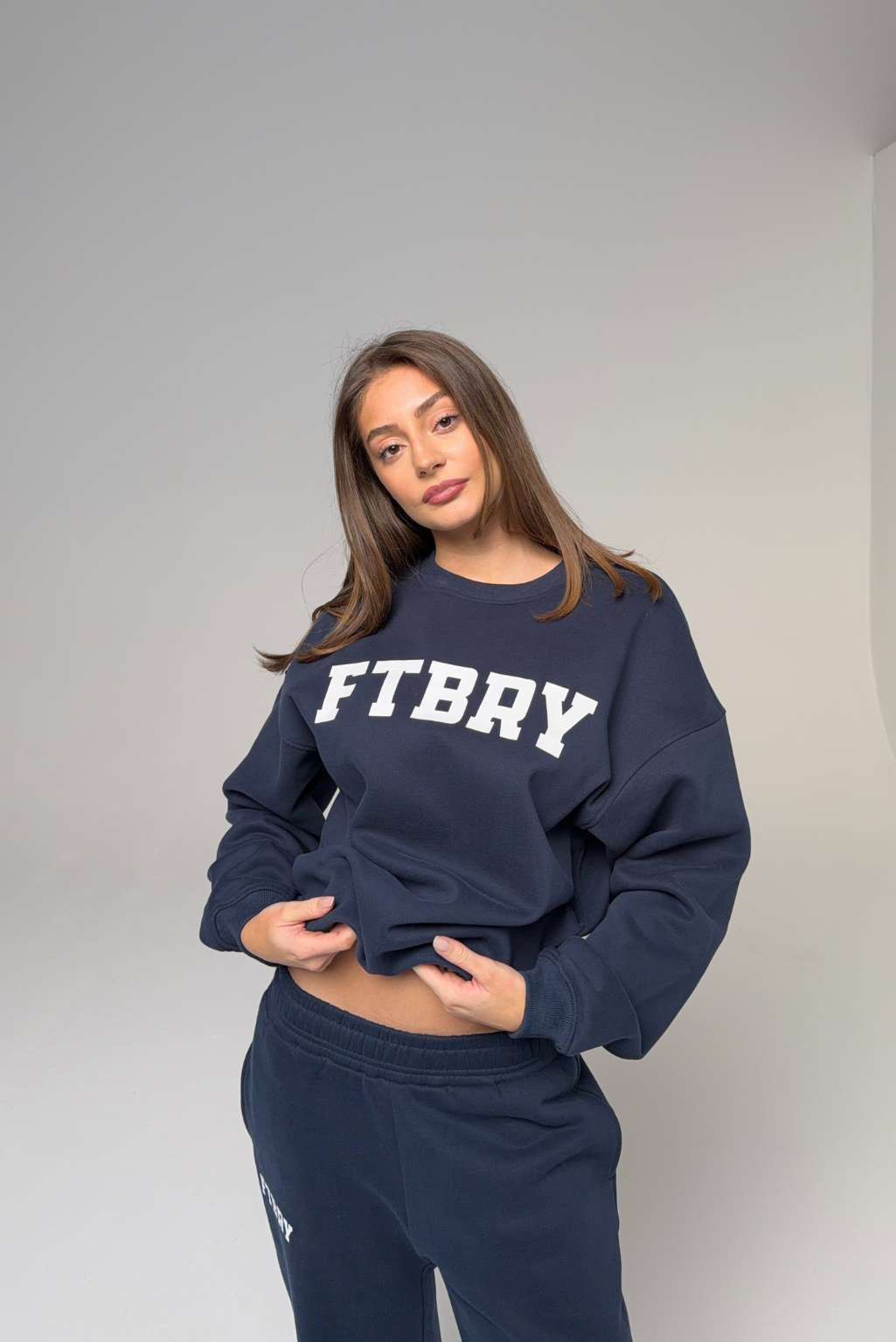 FITBERRY® SPORT & LEISURE OVERSIZED CREWNECK. An oversized crewneck crafted from premium high-quality cotton fabric. The crewneck has a soft fleece interior, round neck, dropped shoulders and ribbed details at the neck, cuffs and waist. Featuring FITBERRY® Sport & Leisure print to front.