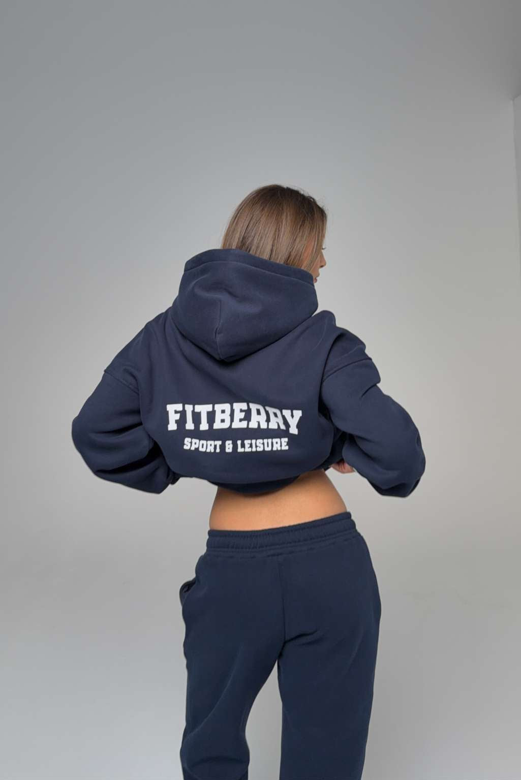 FITBERRY® SPORT & LEISURE ZIP HOODIE. A slightly oversized hoodie crafted from a premium high-quality cotton fabric. The hoodie has zipper in front, soft fleece interior, dropped shoulders, side pockets, a cozy hood and ribbed details on the sleeves and waist. Featuring Sport & Leisure print to front and back.