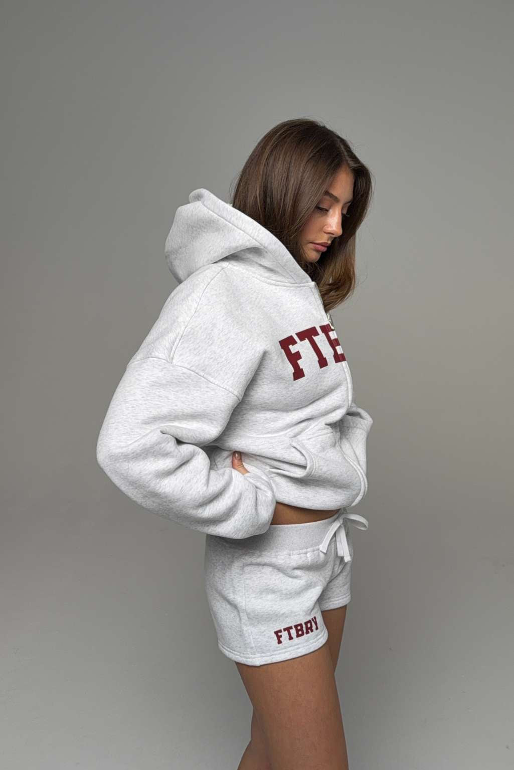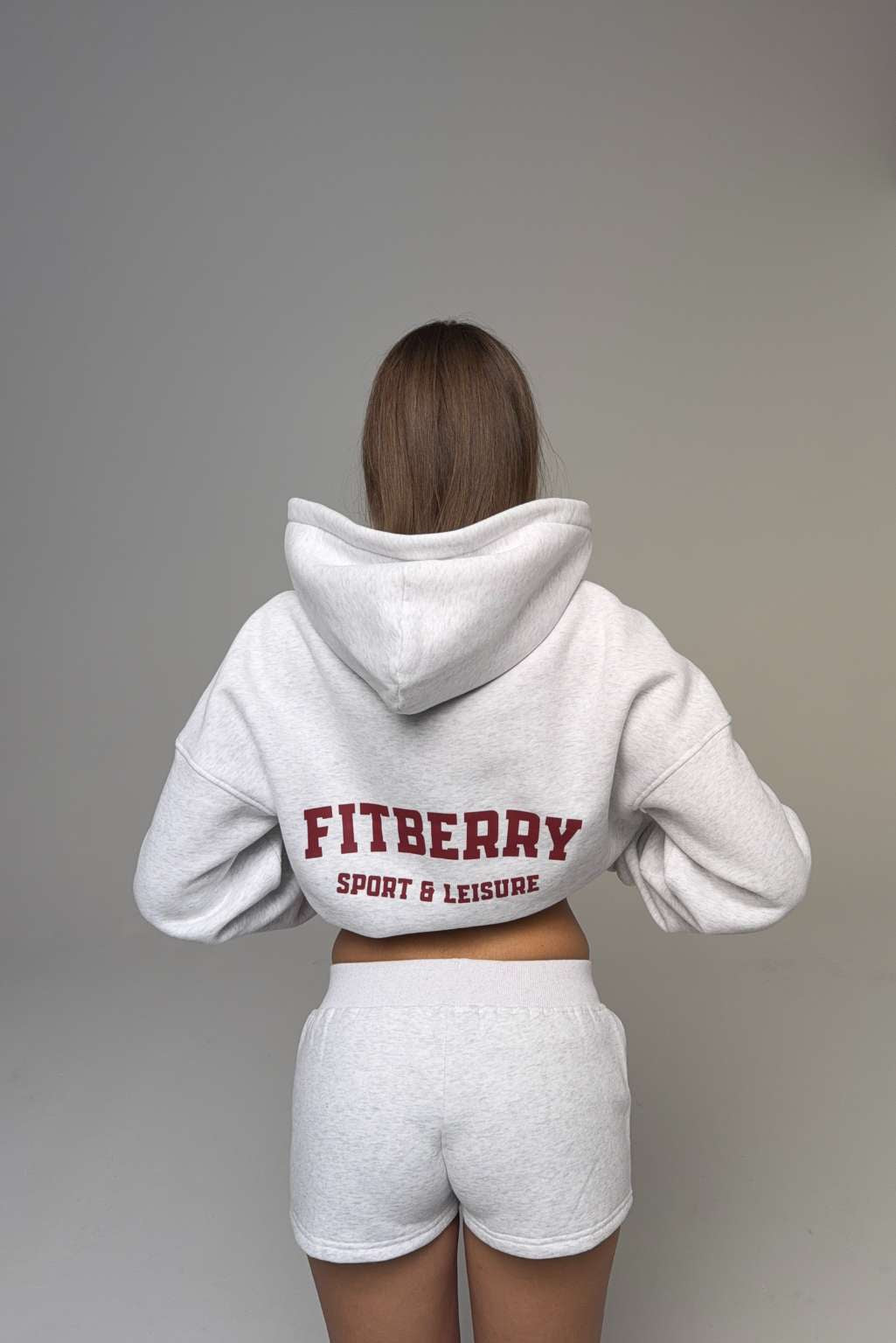 FITBERRY® SPORT & LEISURE SHORTS. Low-waist shorts with a flattering fit. Crafted from a premium high-quality cotton fabric. The shorts feature a soft fleece interior and an adjustable drawstring waist. Featuring FITBERRY® Sport & Leisure print to front.