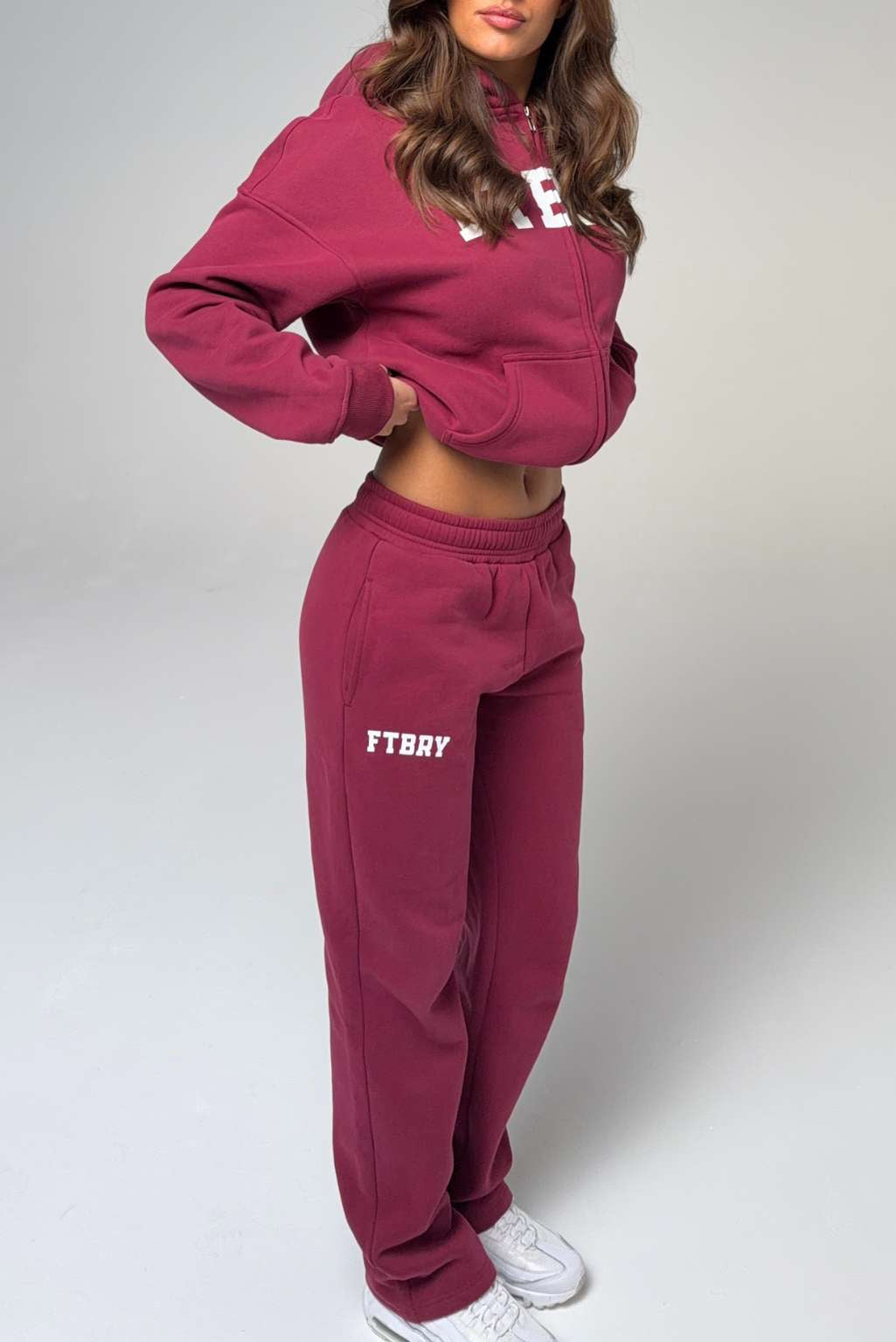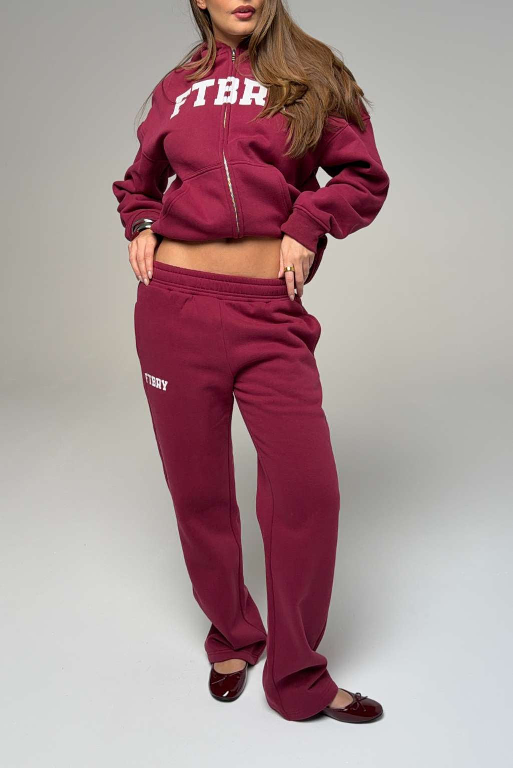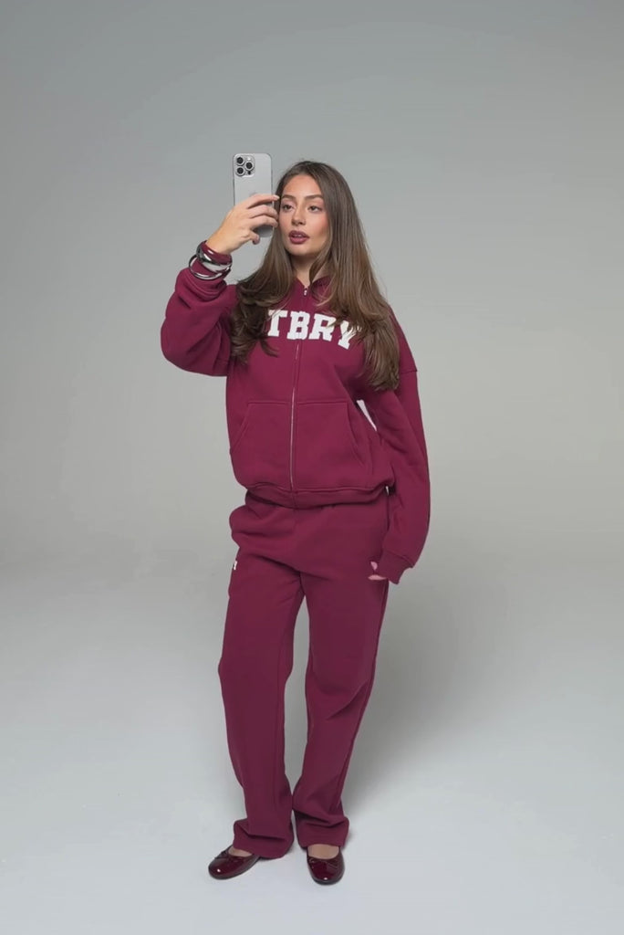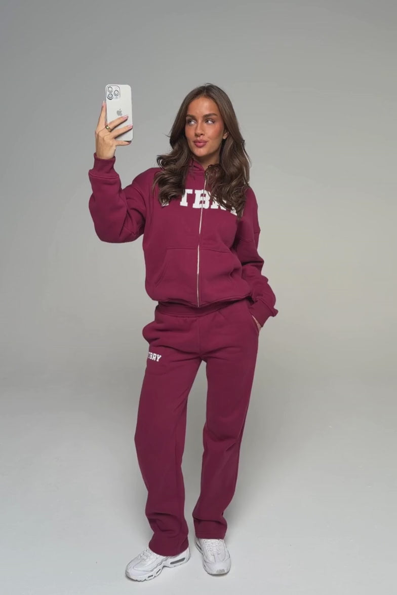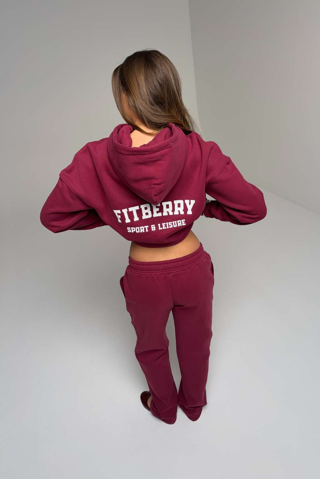FITBERRY® SPORT & LEISURE STRAIGHT LEG JOGGERS. Mid-waist joggers with straight leg and the perfect fit. Crafted from a premium high-quality cotton fabric. The straight joggers have soft fleece interior, deep pockets and a hidden adjustable drawstring waist. Featuring FITBERRY® Sport & Leisure print to front.