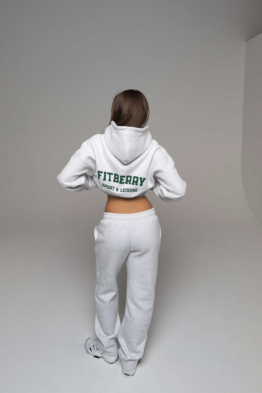 Mid-waist joggers with straight leg and the perfect fit. Crafted from a premium high-quality cotton fabric. The straight joggers have soft fleece interior, deep pockets and a hidden adjustable drawstring waist. Featuring FITBERRY® Sport & Leisure print to front.