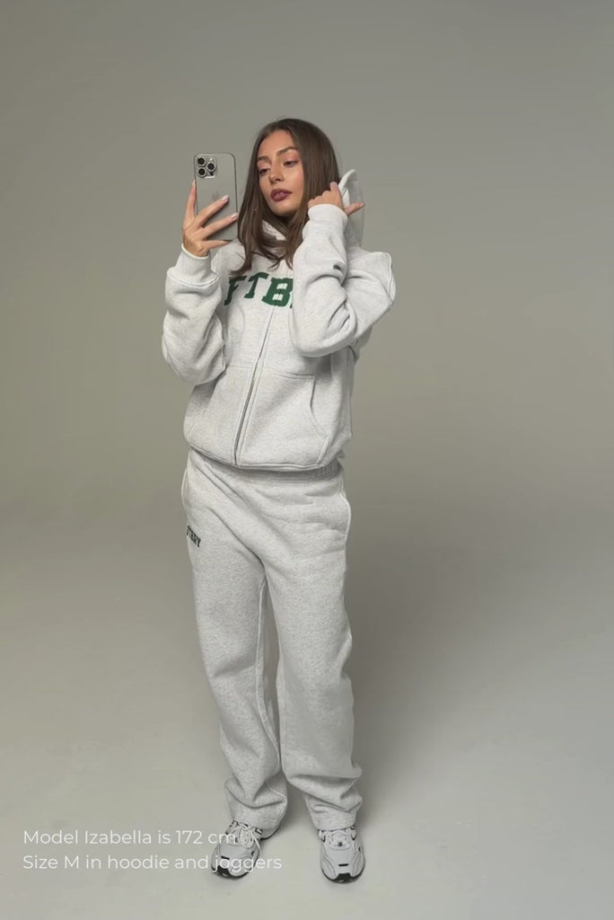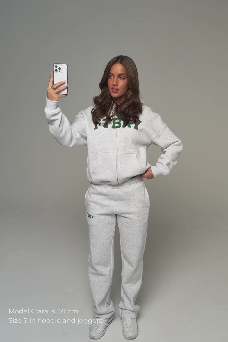 Model 2: Clara is 171cm and wears a size S in both hoodie and joggers / shorts.