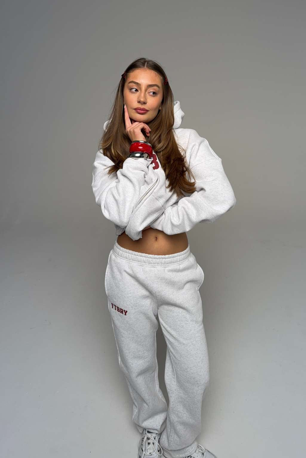 Model 2: Clara is 171cm and wears a size S in both hoodie and joggers / shorts.