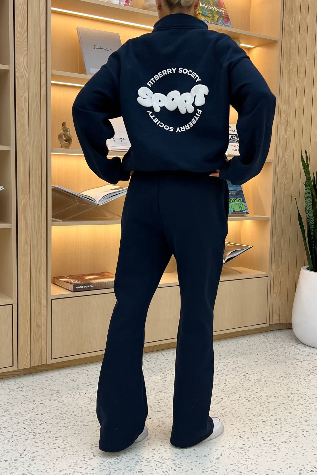 FITBERRY® SPORT SOCIETY FLARED JOGGERS. Joggers with the perfect flared leg and an oversized fit. Crafted from a premium high-quality cotton fabric. The flare joggers have soft fleece interior, deep pockets and a hidden adjustable drawstring waist.