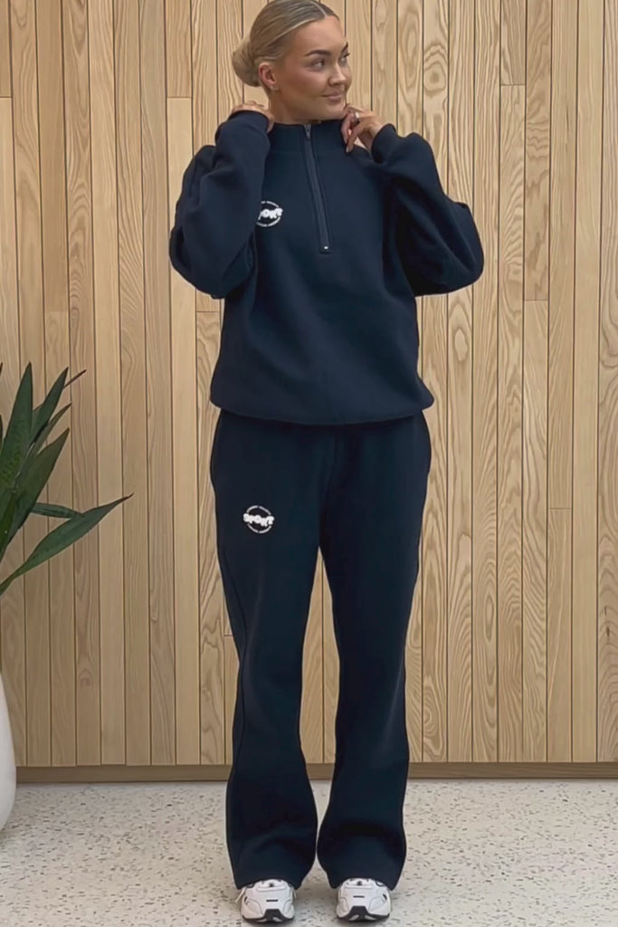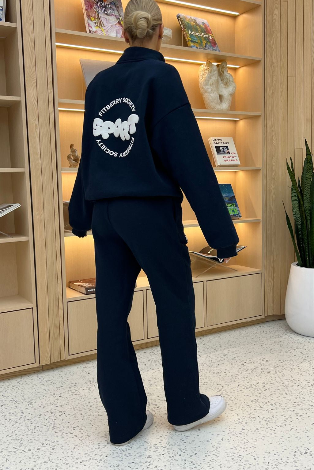 FITBERRY® SPORT SOCIETY OVERSIZED HALF ZIP. A sweatshirt with half zip in front and the perfect oversized fit. Crafted from a premium high-quality cotton fabric. The half zip has soft fleece interior, dropped shoulders and ribbed details on the sleeves and waist. Featuring our signature Sport Society logo to front and back.