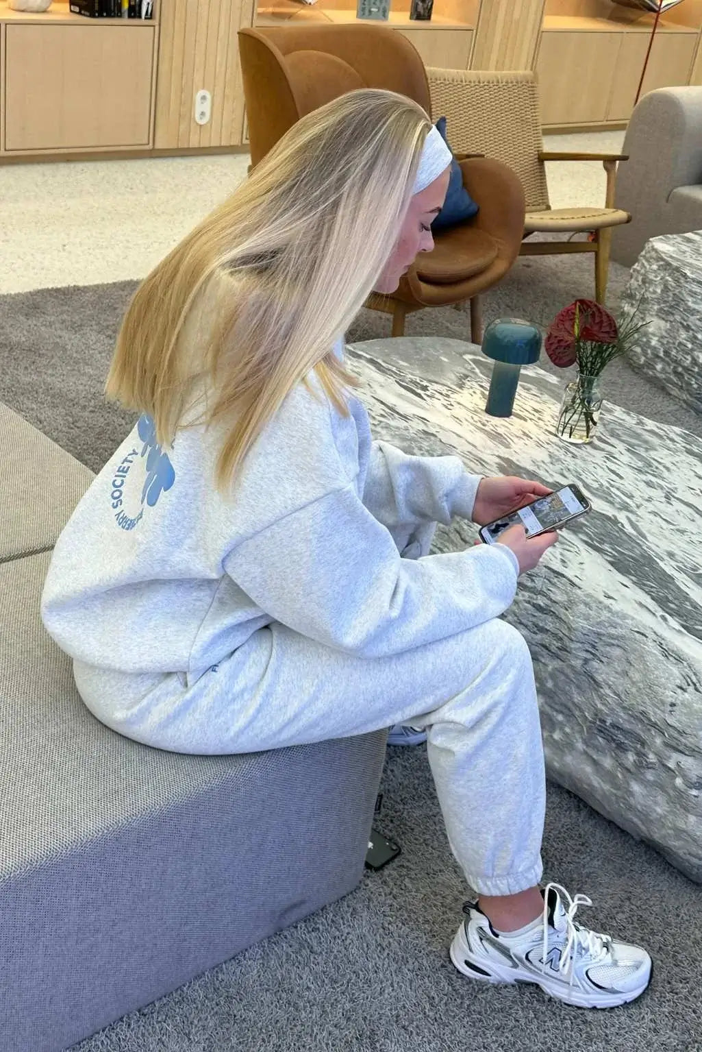 FITBERRY® SPORT SOCIETY OVERSIZED HOODIE. An oversized hoodie crafted from a premium high-quality cotton fabric. The hoodie has a soft fleece interior, dropped shoulders, a cozy hood and ribbed details on the sleeves and waist. Featuring our signature Sport Society print to front and back.