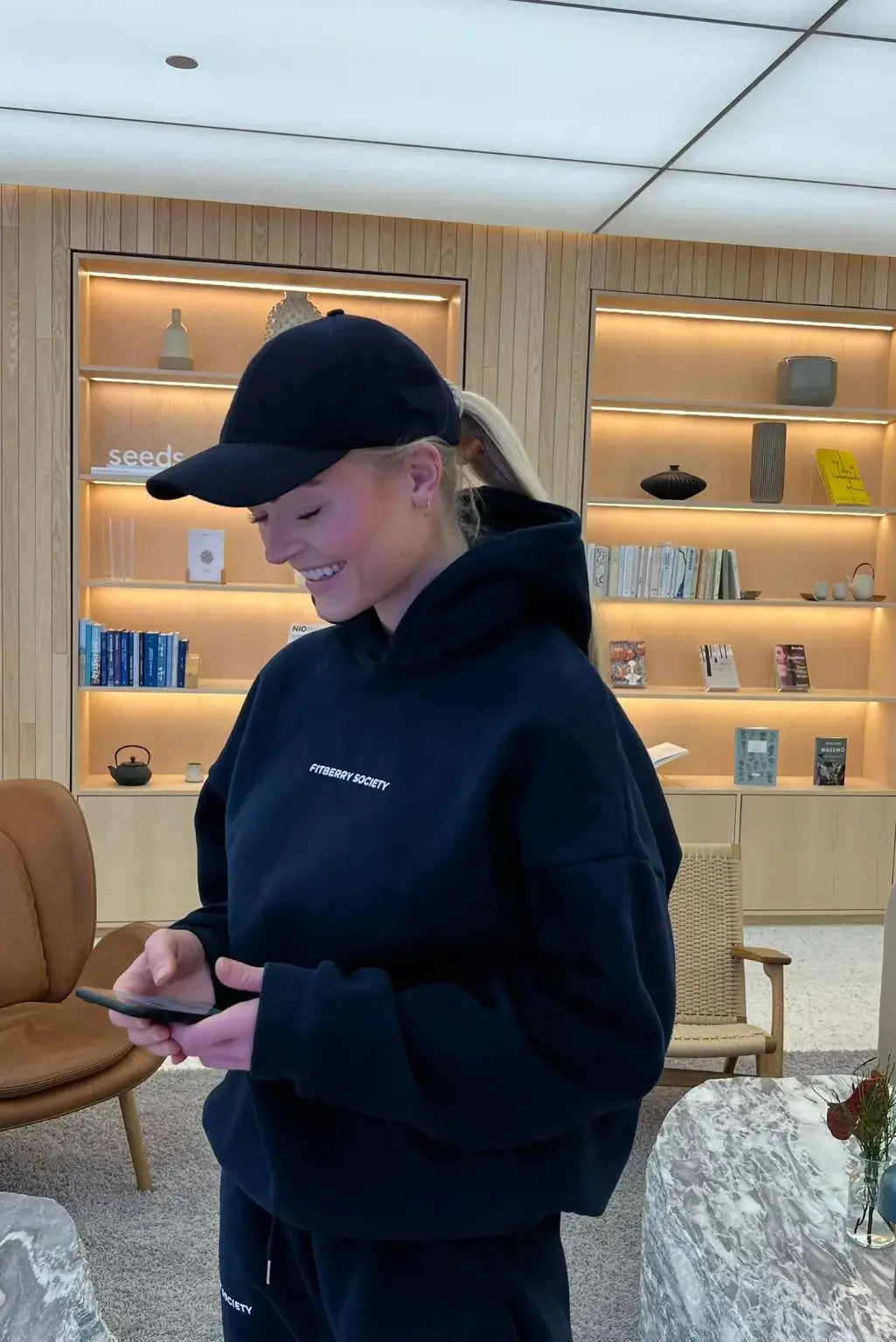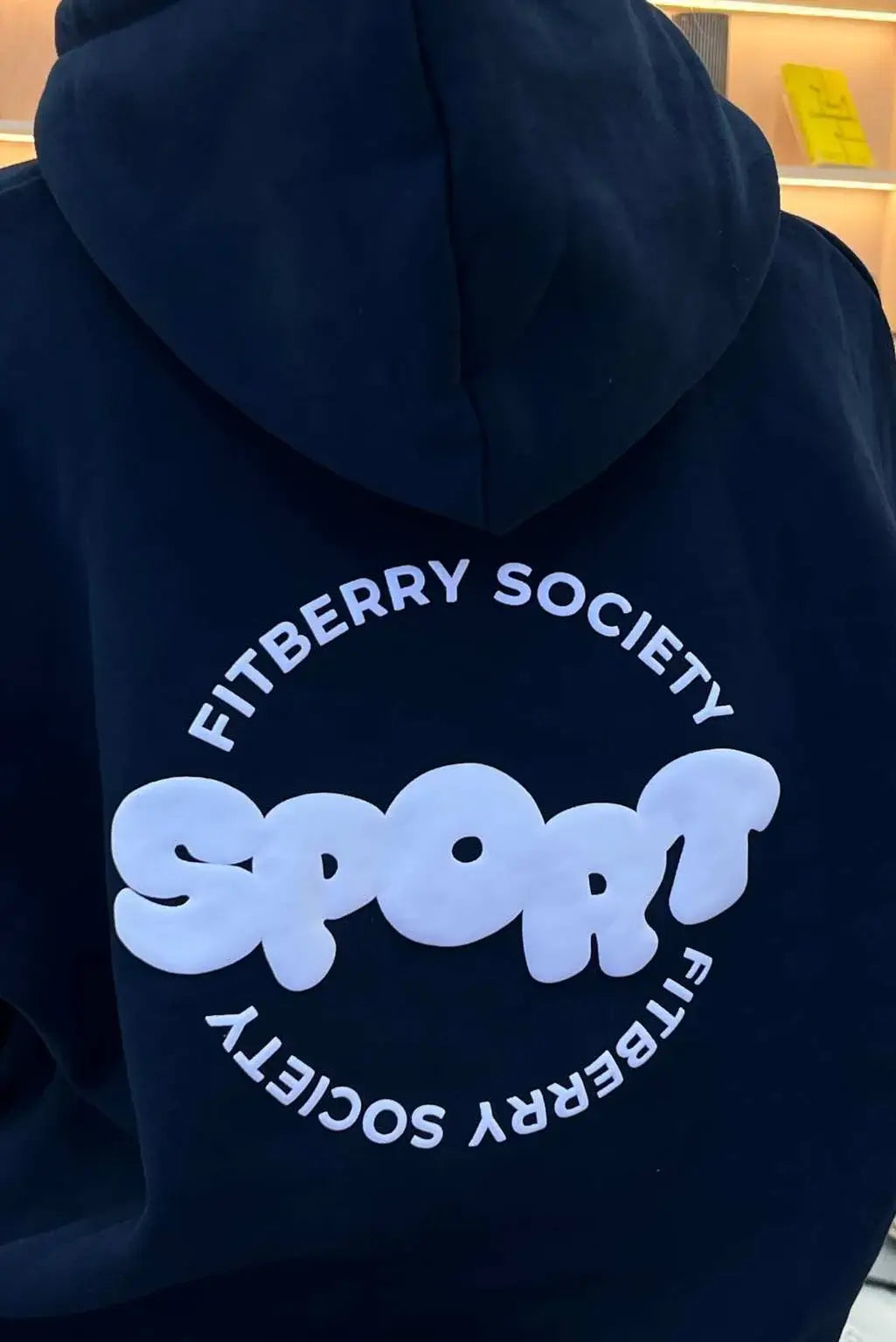 FITBERRY® SPORT SOCIETY OVERSIZED HOODIE. An oversized hoodie crafted from a premium high-quality cotton fabric. The hoodie has a soft fleece interior, dropped shoulders, a cozy hood and ribbed details on the sleeves and waist. Featuring our signature Sport Society print to front and back.