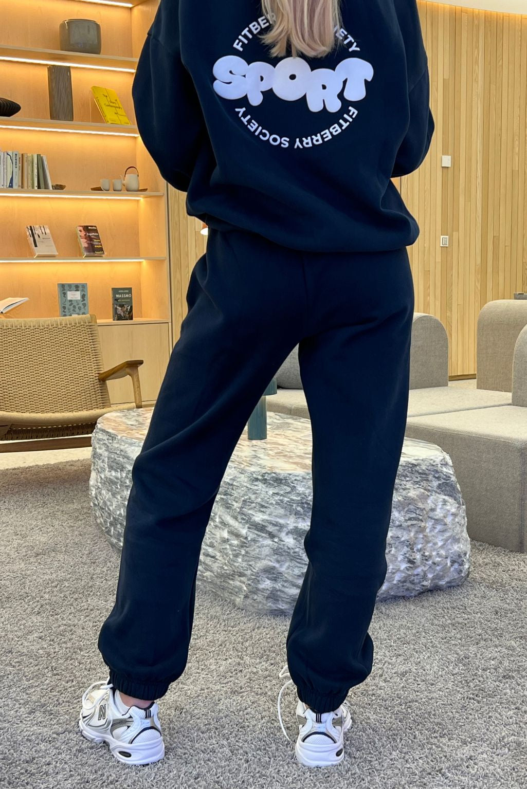 FITBERRY® SPORT SOCIETY OVERSIZED JOGGERS. Joggers with an oversized fit crafted from a premium high-quality cotton fabric. The joggers have soft fleece interior, deep pockets, an adjustable drawstring waist and elastics at waist and leg openings. Featuring our signature Sport Society logo at the front.