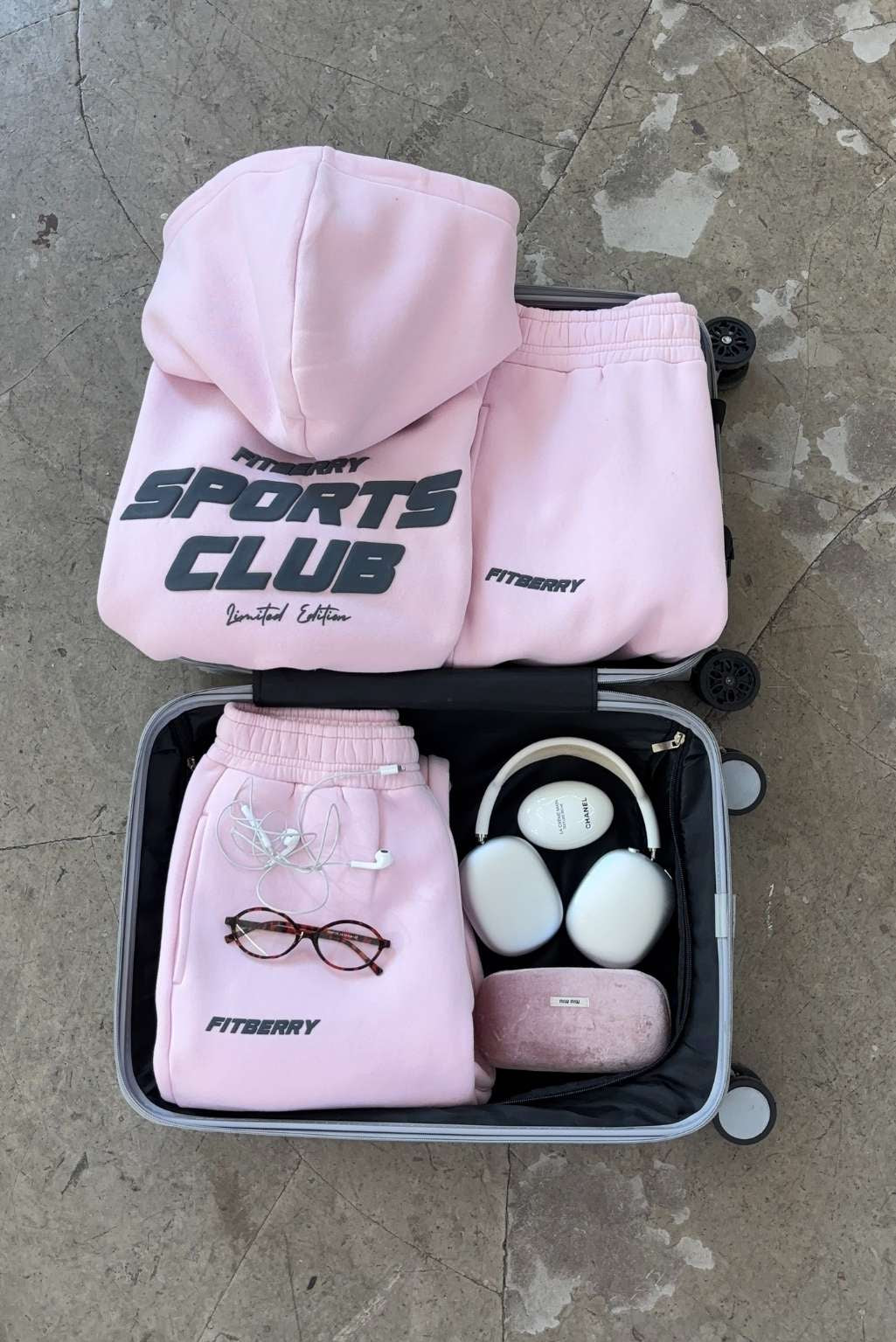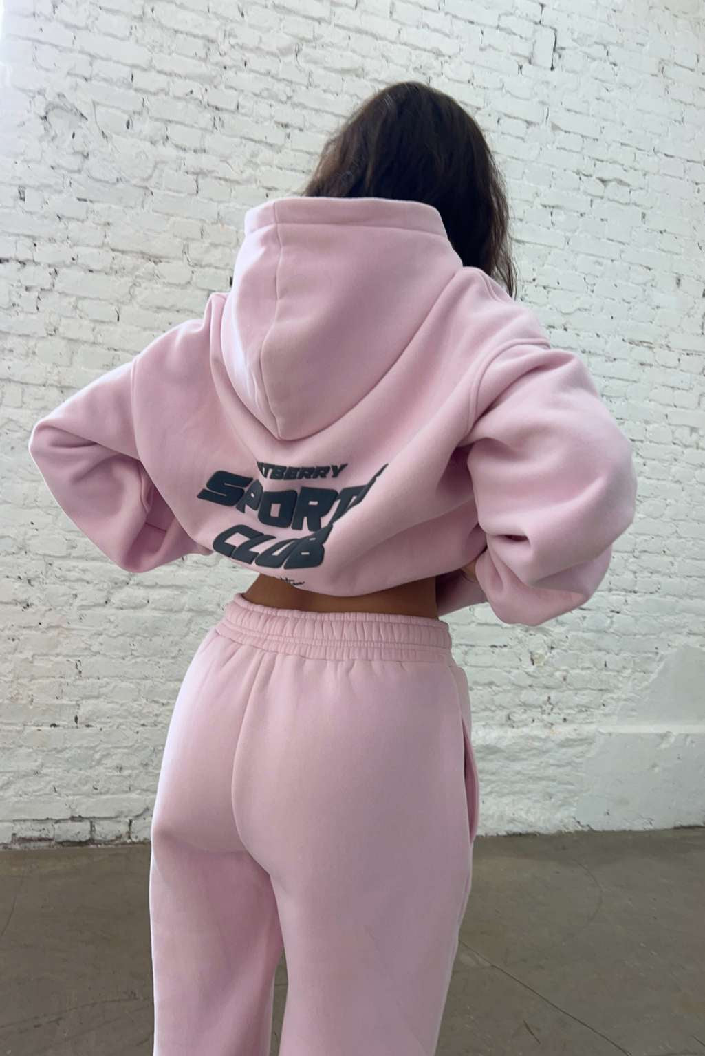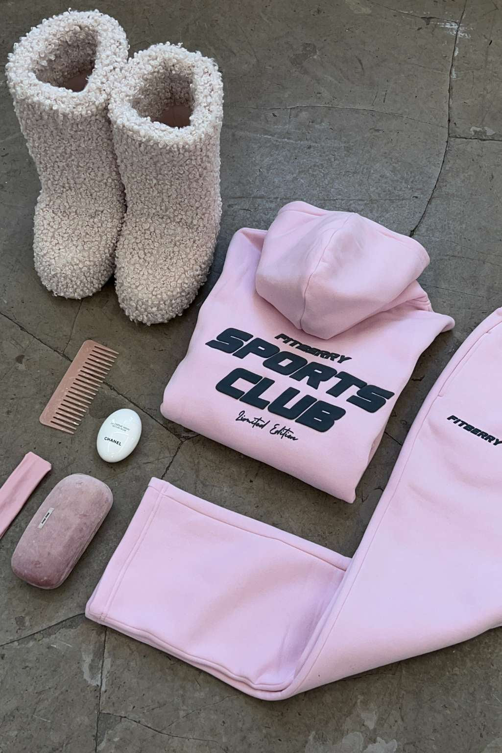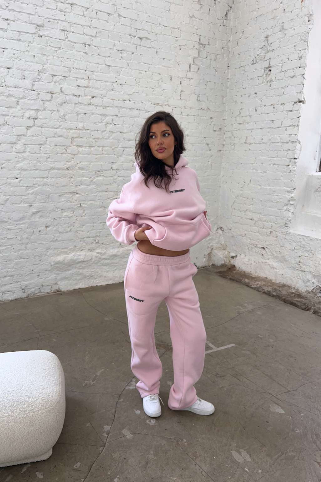 FITBERRY® SPORTS CLUB OVERSIZED HOODIE. An oversized hoodie crafted from premium high-quality cotton fabric. The hoodie has a soft fleece interior, dropped shoulders, a cozy hood, front pocket and ribbed details on the sleeves and waist. Featuring Fitberry Sports Club print to front and back.