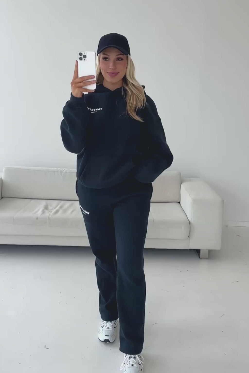 FITBERRY® SPORTY STRAIGHT LEG JOGGERS. Mid-waist joggers with straight leg and the perfect fit. Crafted from a premium high-quality cotton fabric. The straight joggers have soft fleece interior, deep pockets and a hidden adjustable drawstring waist. Featuring our Fitberry Sporty print to front.