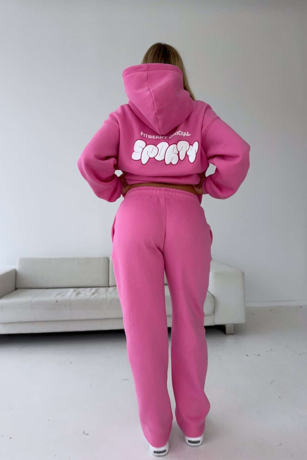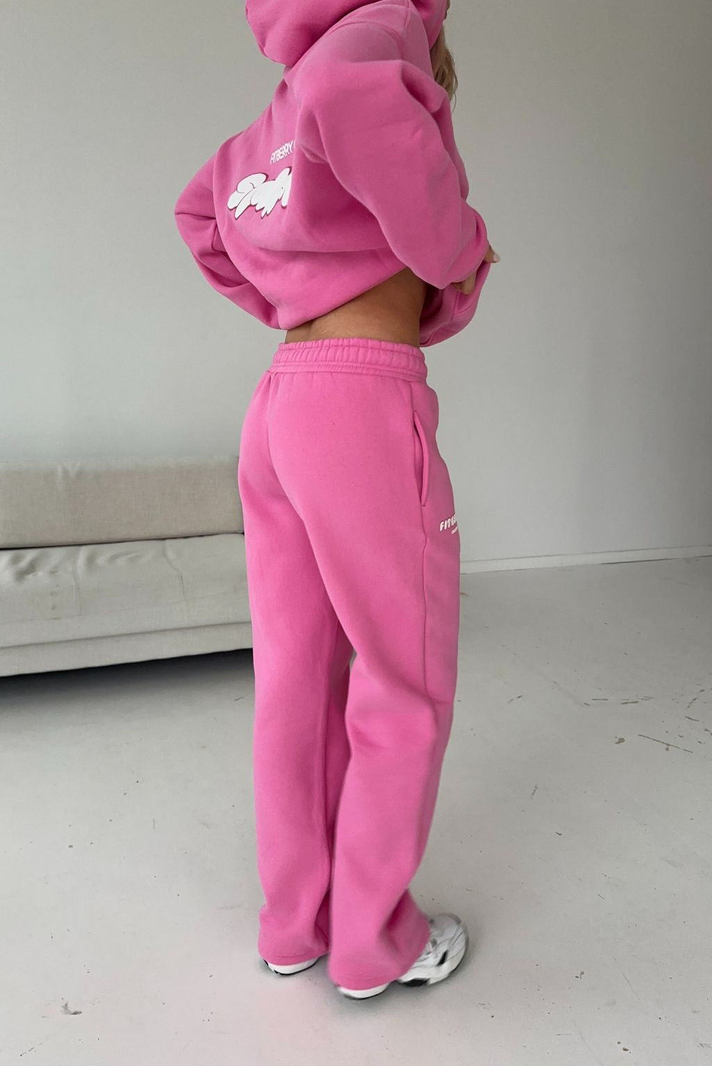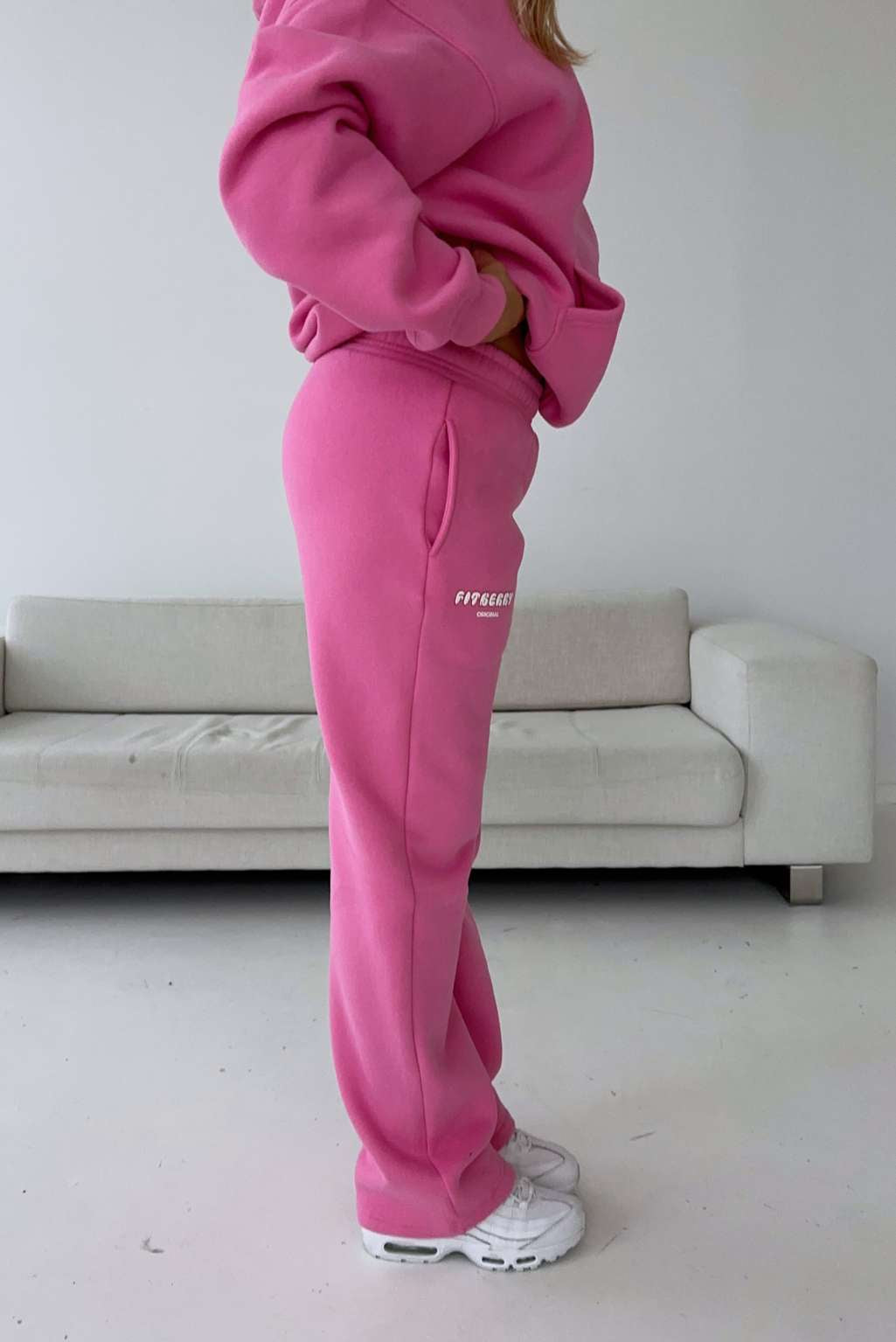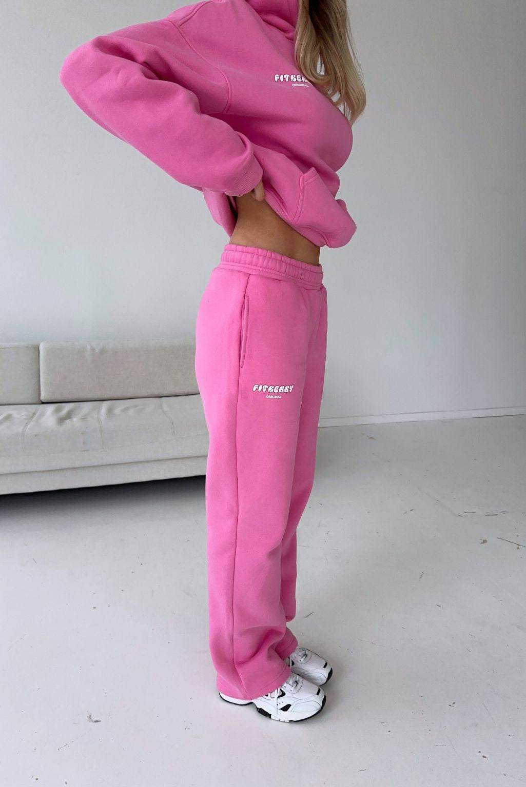 FITBERRY® SPORTY STRAIGHT LEG JOGGERS. Mid-waist joggers with straight leg and the perfect fit. Crafted from a premium high-quality cotton fabric. The straight joggers have soft fleece interior, deep pockets and a hidden adjustable drawstring waist. Featuring our Fitberry Sporty print to front.