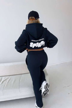 Model 3: Mia is 170cm and wears a size M in both hoodie and joggers.