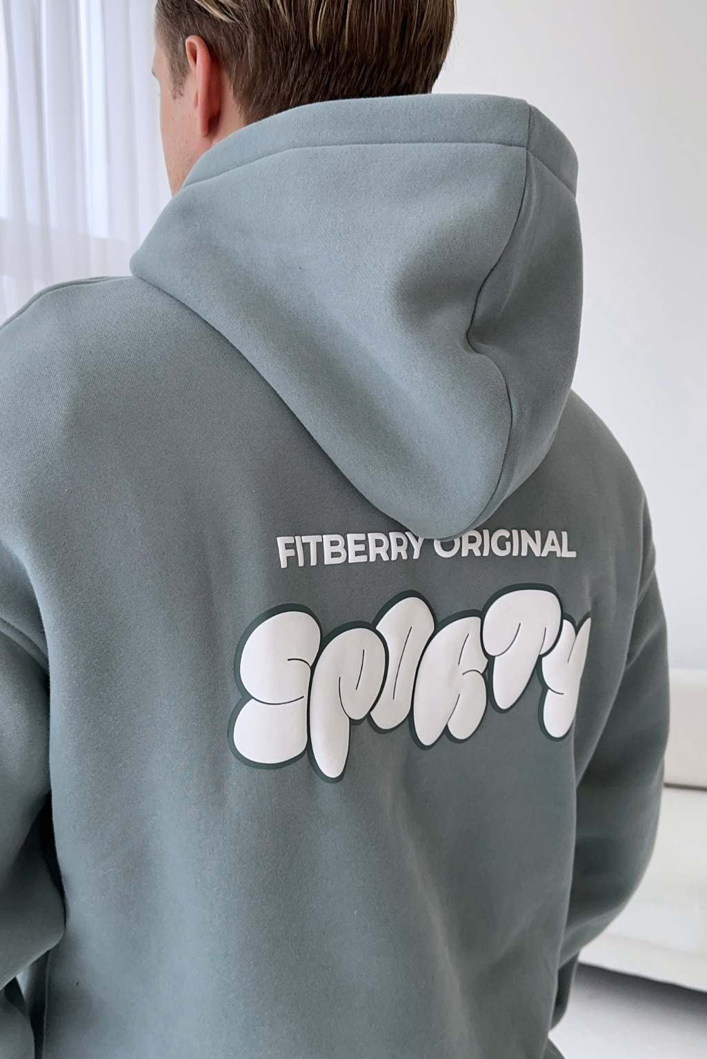 FITBERRY® SPORTY OVERSIZED HOODIE. An oversized hoodie crafted from premium high-quality cotton fabric. The hoodie has a soft fleece interior, dropped shoulders, a cozy hood, front pocket and ribbed details on the sleeves and waist. Featuring Fitberry Sporty print to front and back.
