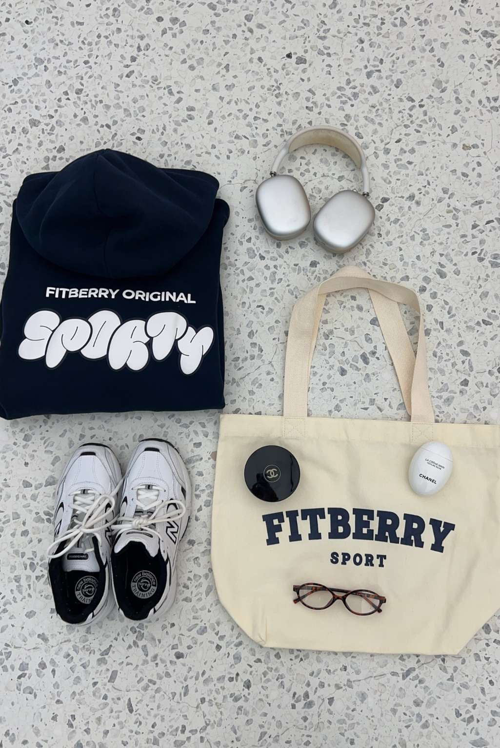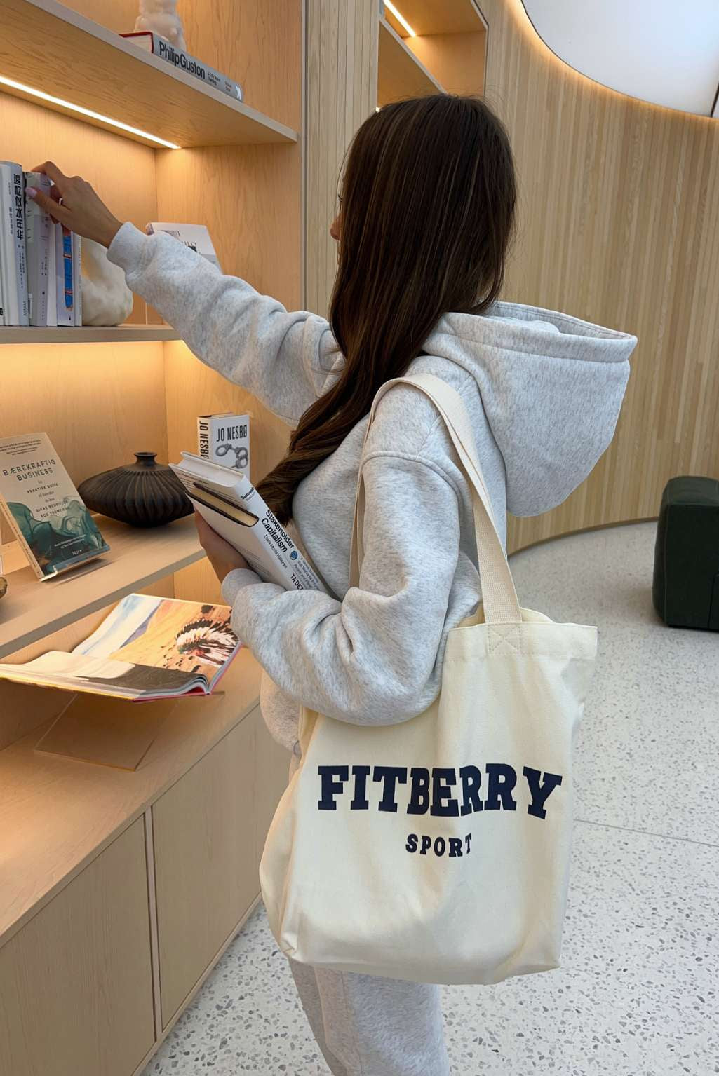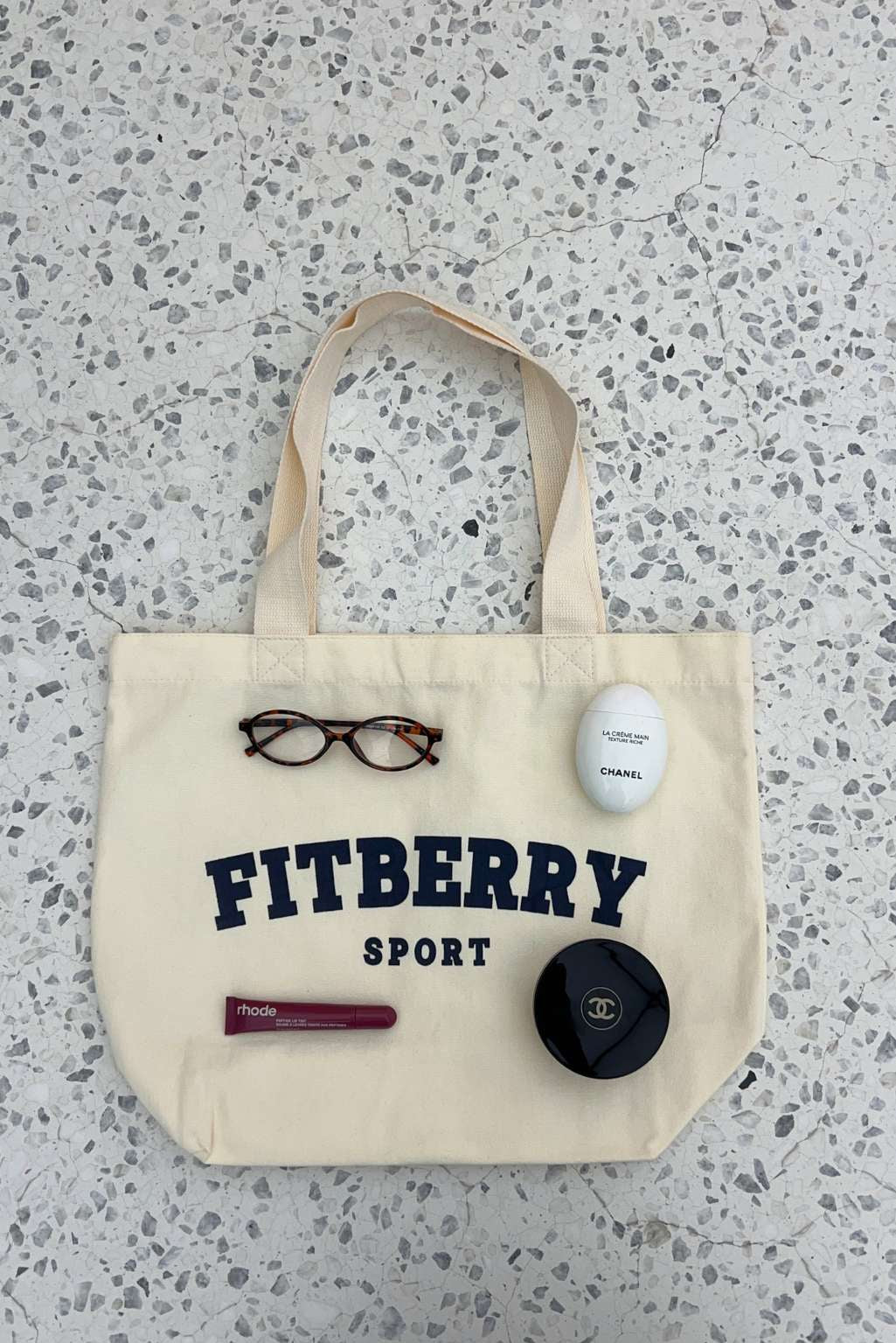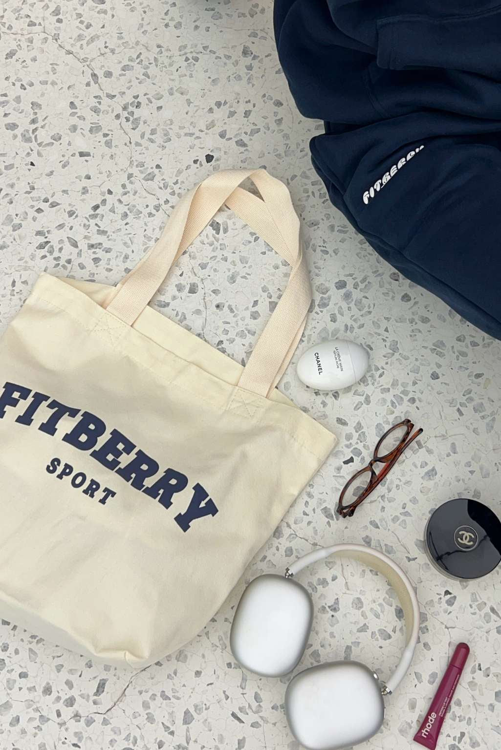 FITBERRY® SPORTY TOTE BAG. The ultimate everyday tote. Crafted from durable cotton canvas. Designed with sturdy shoulder straps, FITBERRY® print and a spacious interior that fits your essentials whether you're heading to pilates, brunch or a slow sunday stroll.