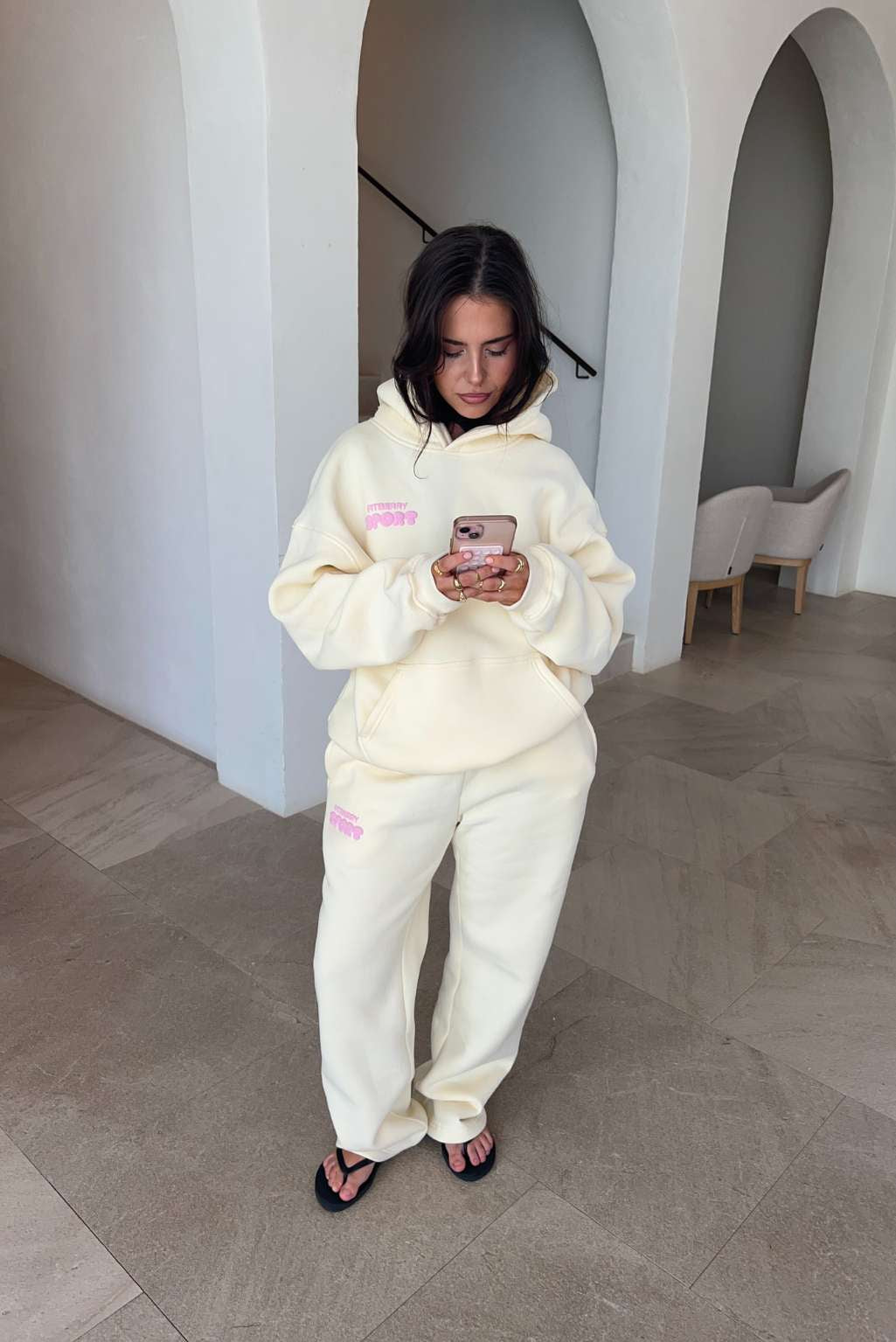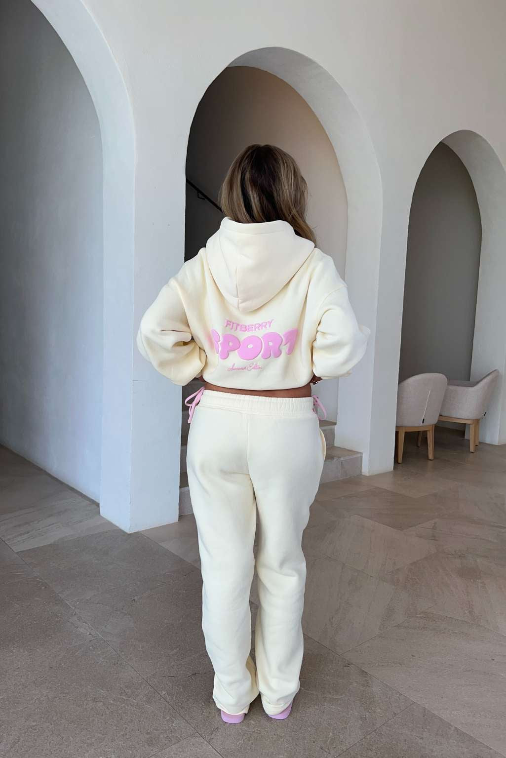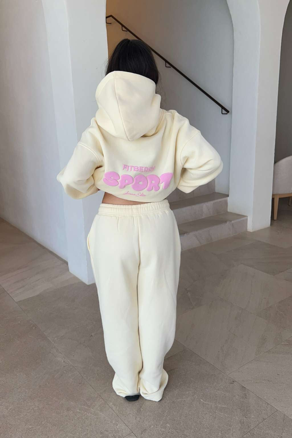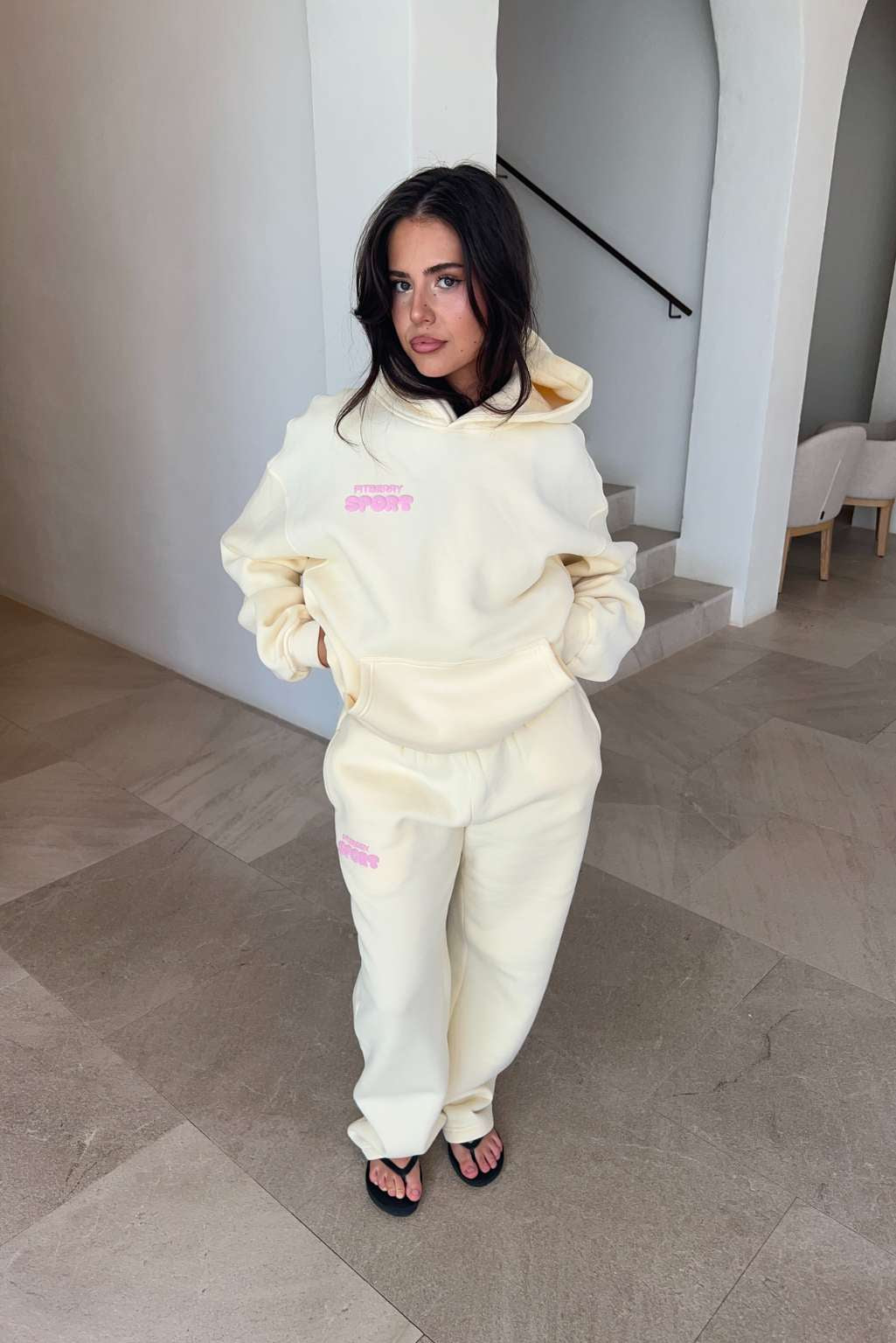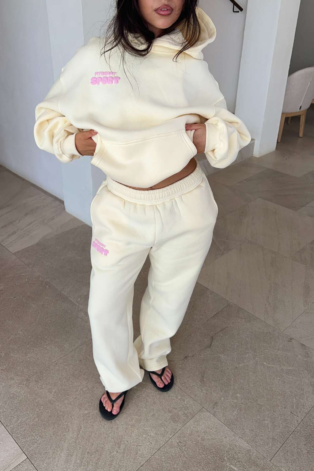 Model 2: Anne is 160cm and wears a size S in hoodie and size M in joggers / shorts.