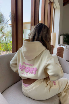 Model 1: Hanna is 160cm and wears a size S in hoodie and size XS in joggers / shorts.