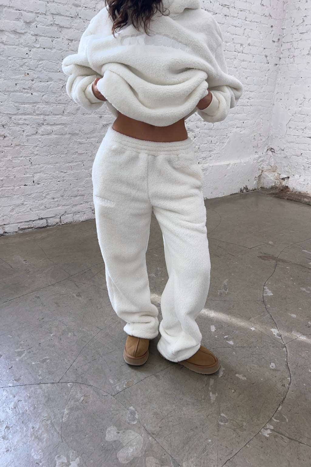 FITBERRY® SNOW BUNNY FLARED JOGGERS. Joggers with the perfect flared leg and a normal fit. Crafted from a buttery soft teddy fleece fabric. The flare joggers have soft fleece interior, deep pockets and an elastic waist. Featuring Fitberry embroidery logo to front.