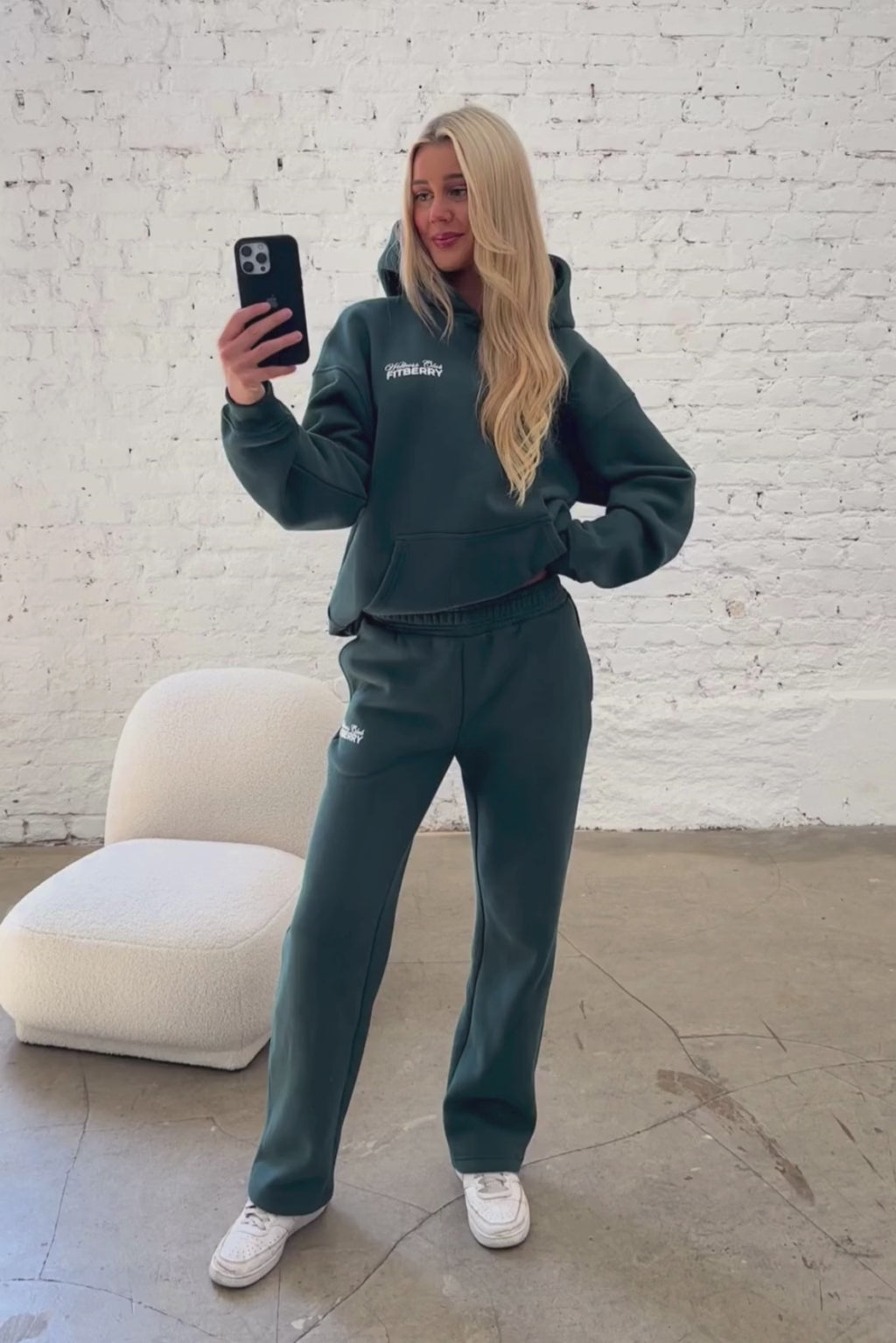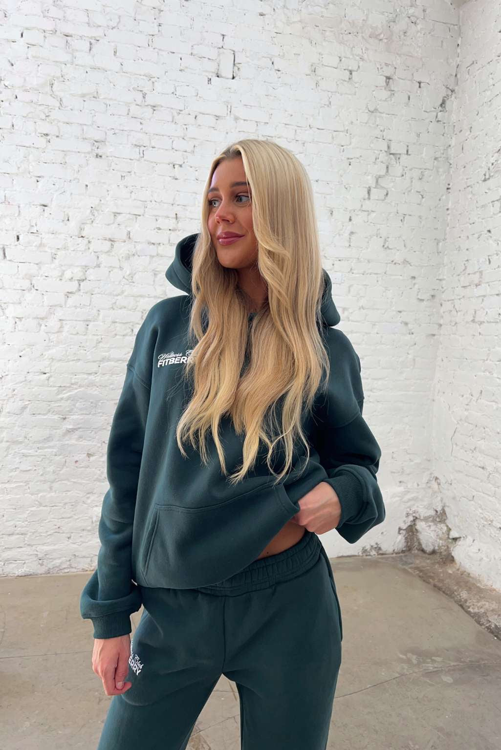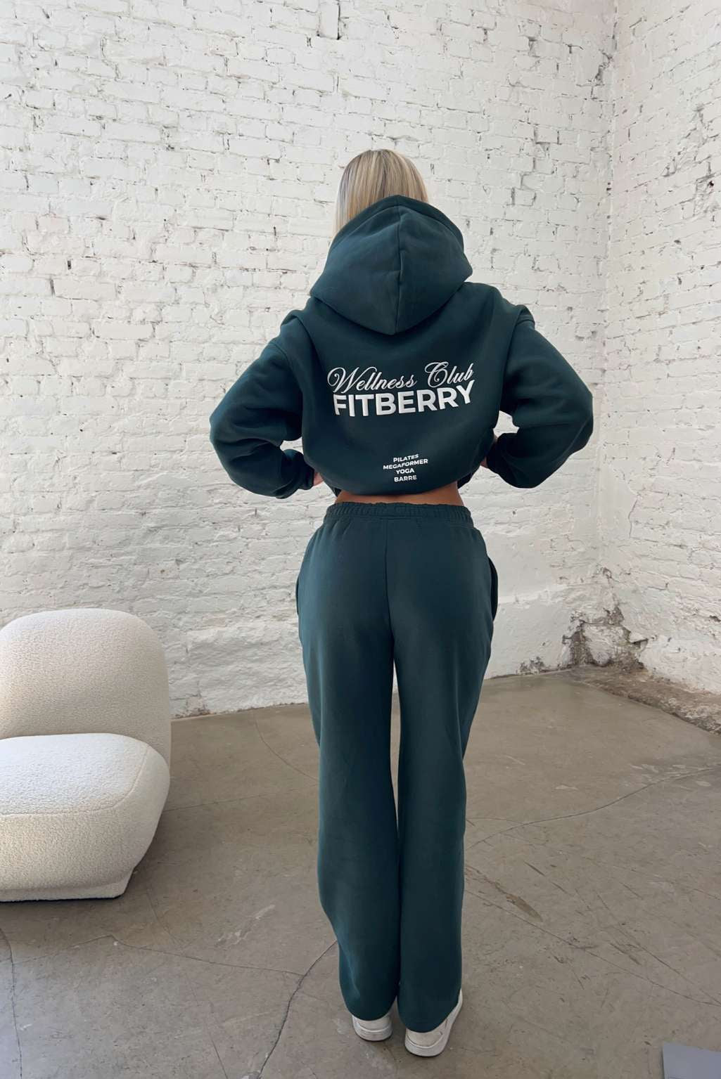 FITBERRY® WELLNESS CLUB OVERSIZED HOODIE. An oversized hoodie crafted from premium high-quality cotton fabric. The hoodie has a soft fleece interior, dropped shoulders, a cozy hood and ribbed details on the sleeves and waist. Featuring FITBERRY® WELLNESS CLUB print to front and back.