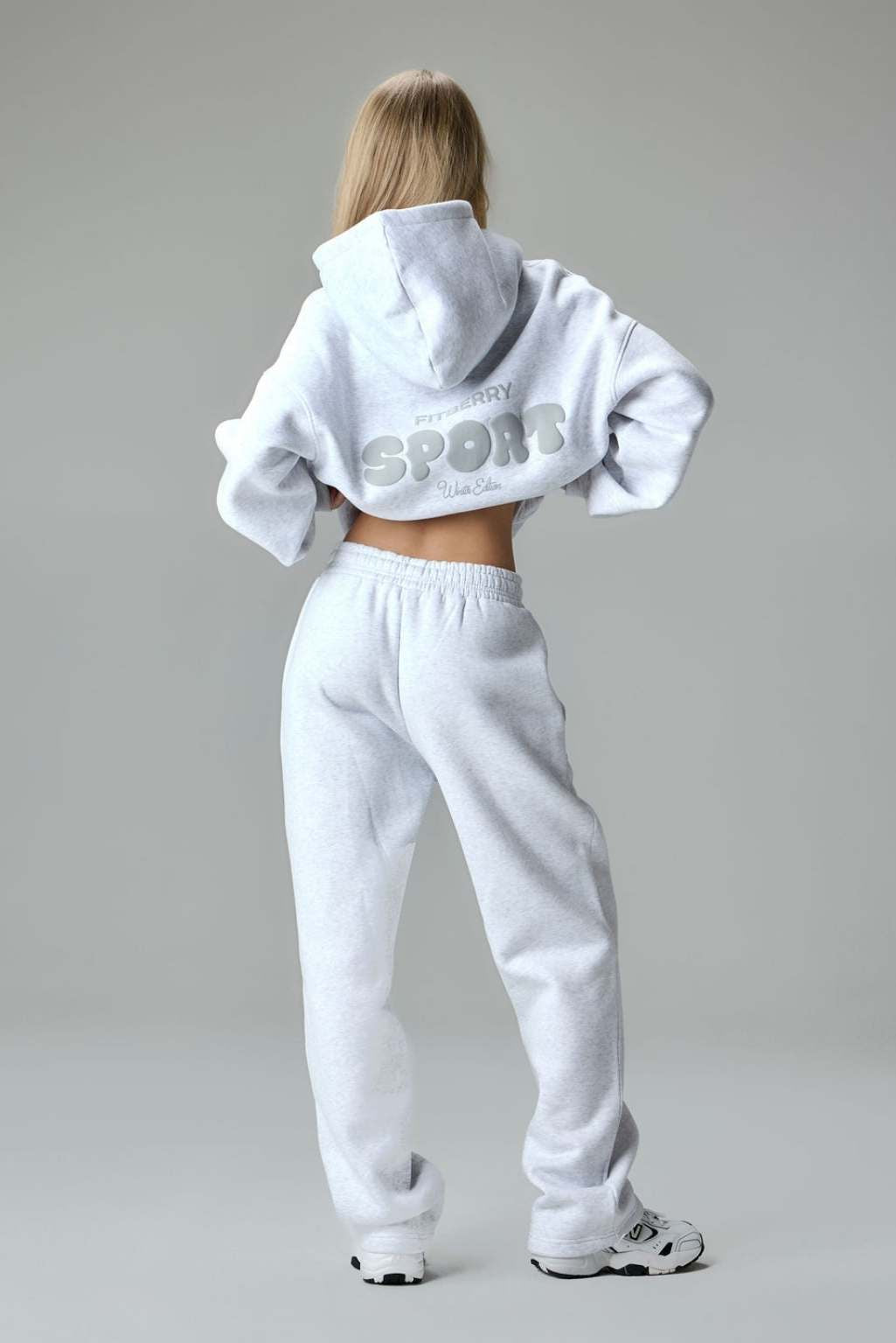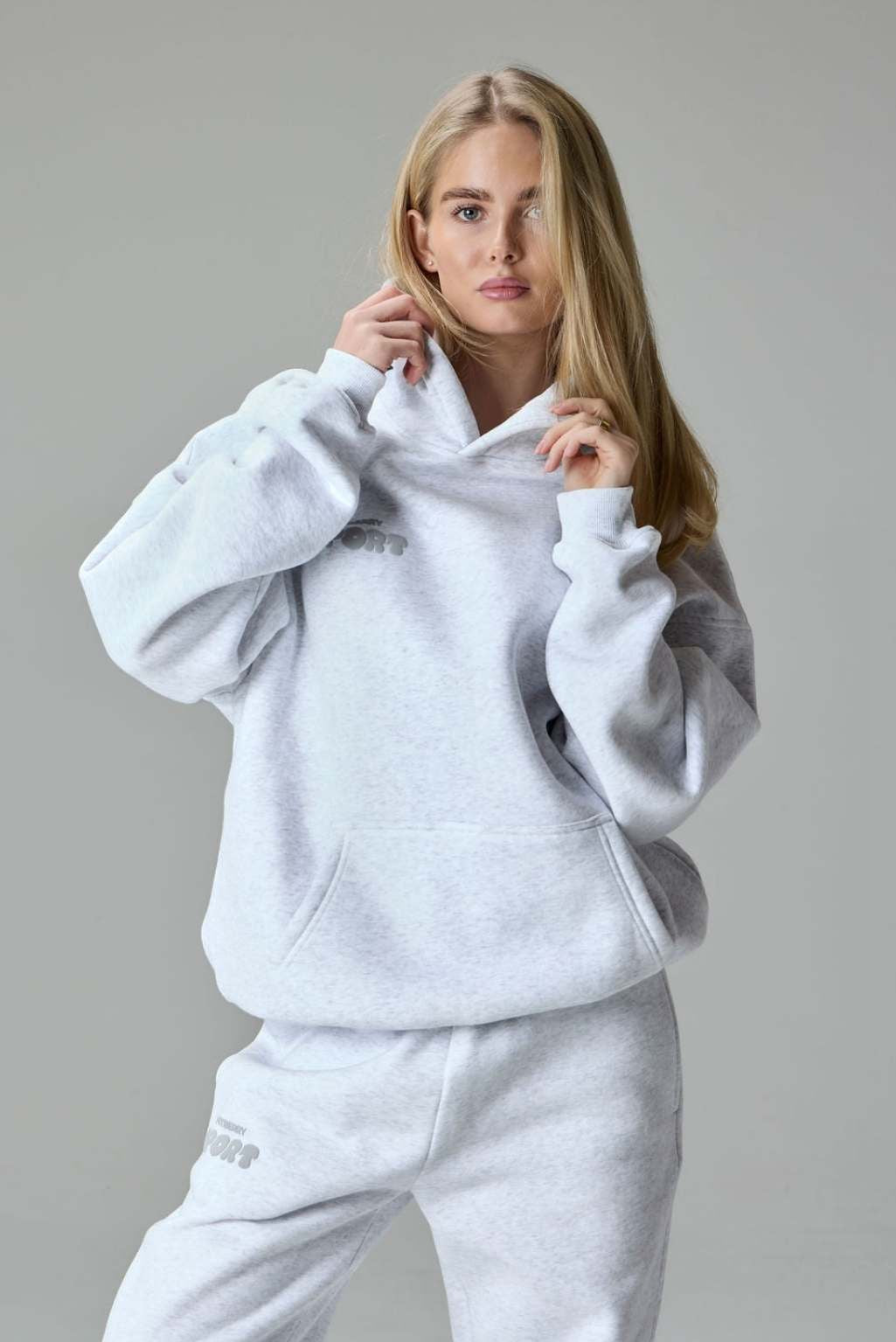 Model 1: Emma is 173cm and wears a size S in both hoodie and joggers.