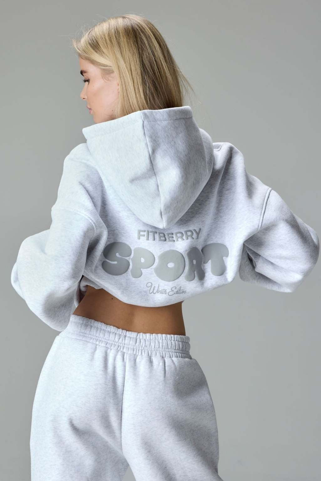 FITBERRY® WINTER EDITION OVERSIZED HOODIE. An oversized hoodie crafted from premium high-quality cotton fabric. The hoodie has a soft fleece interior, dropped shoulders, a cozy hood, front pocket and ribbed details on the sleeves and waist. Featuring our signature Fitberry Winter Edition print to front and back.